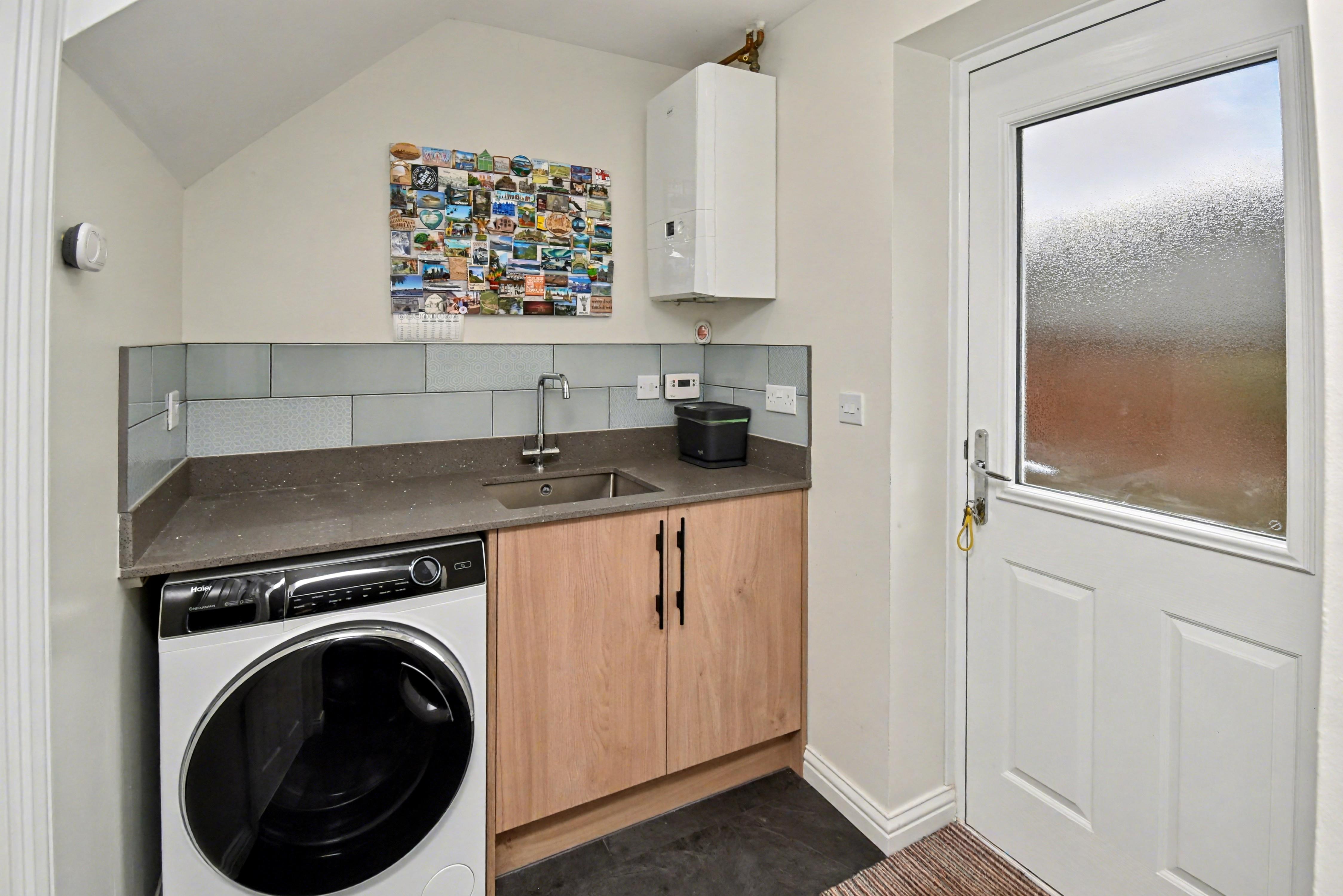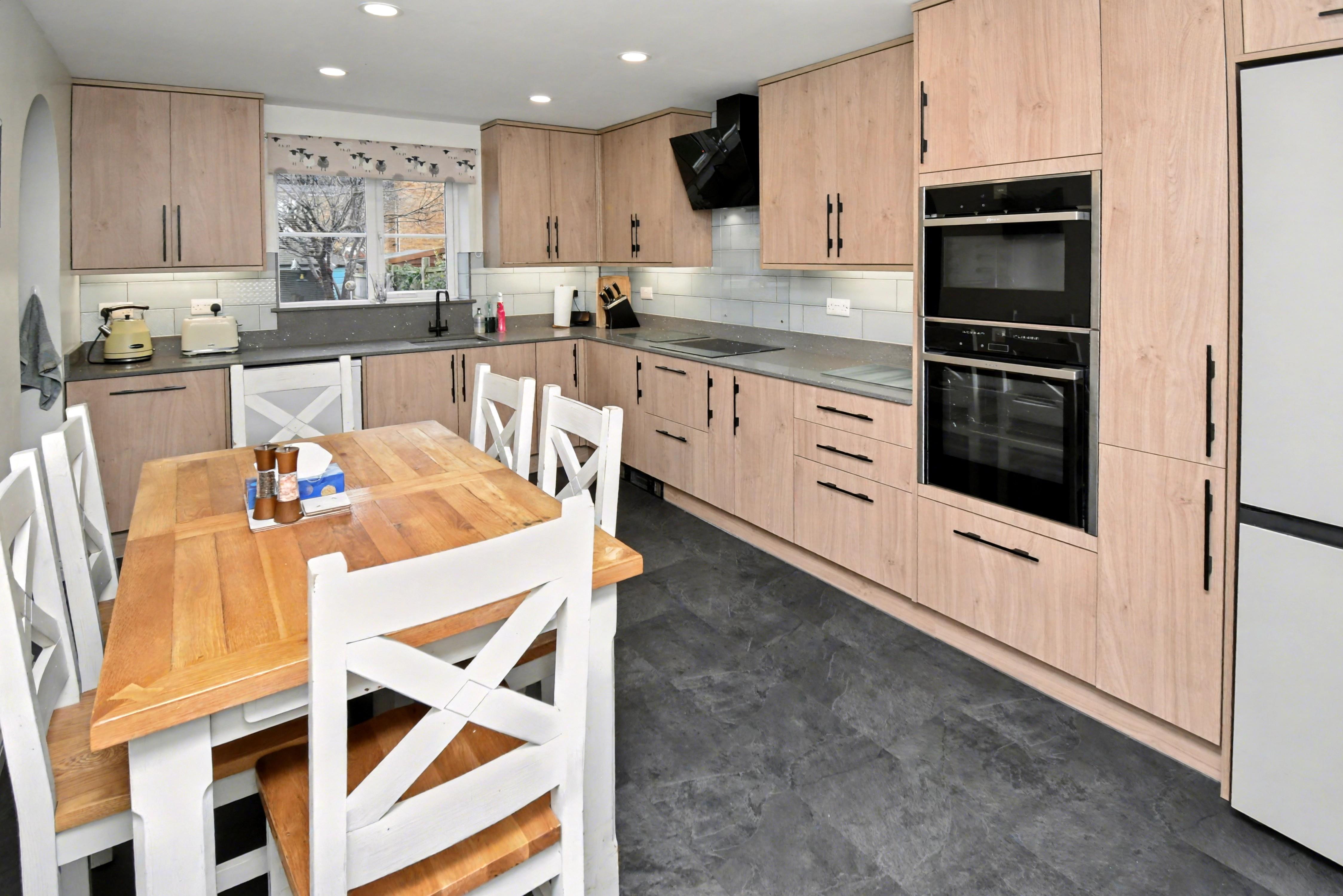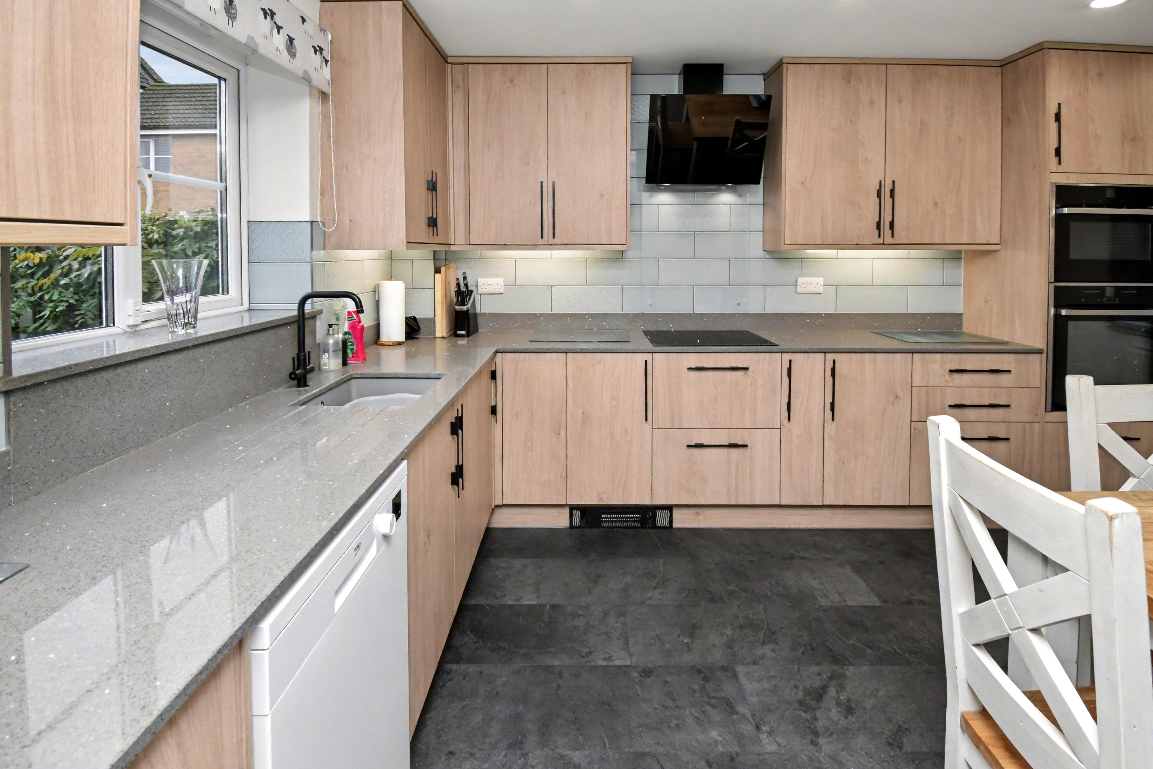 On entering the property, you will be greeted by a welcoming and airy reception hall, with accommodation comprising a cloakroom/WC, dining room and a superb, refitted kitchen/breakfast room installed by Hillery & Sons of Kettering which includes AEG and Neff appliances and high-quality quartz worksurfaces, there is also a matching utility room. The first floor provides a dual aspect living room, master bedroom which boasts refitted en-suite facilities. The second floor offers three further bedrooms and refitted bathroom suite. Outside, there is an attractive frontage with a driveway set to the left-hand side and provides OFF ROAD PARKING for two vehicles with an EV charging point and leads to the GARAGE. The rear garden has been landscaped to provide two seating areas and is complimented by a gazebo and various greenery which adds to the setting perfectly. In our opinion only by visiting this superb family home will it be truly appreciated! Energy Rating C. Council Tax Band E.