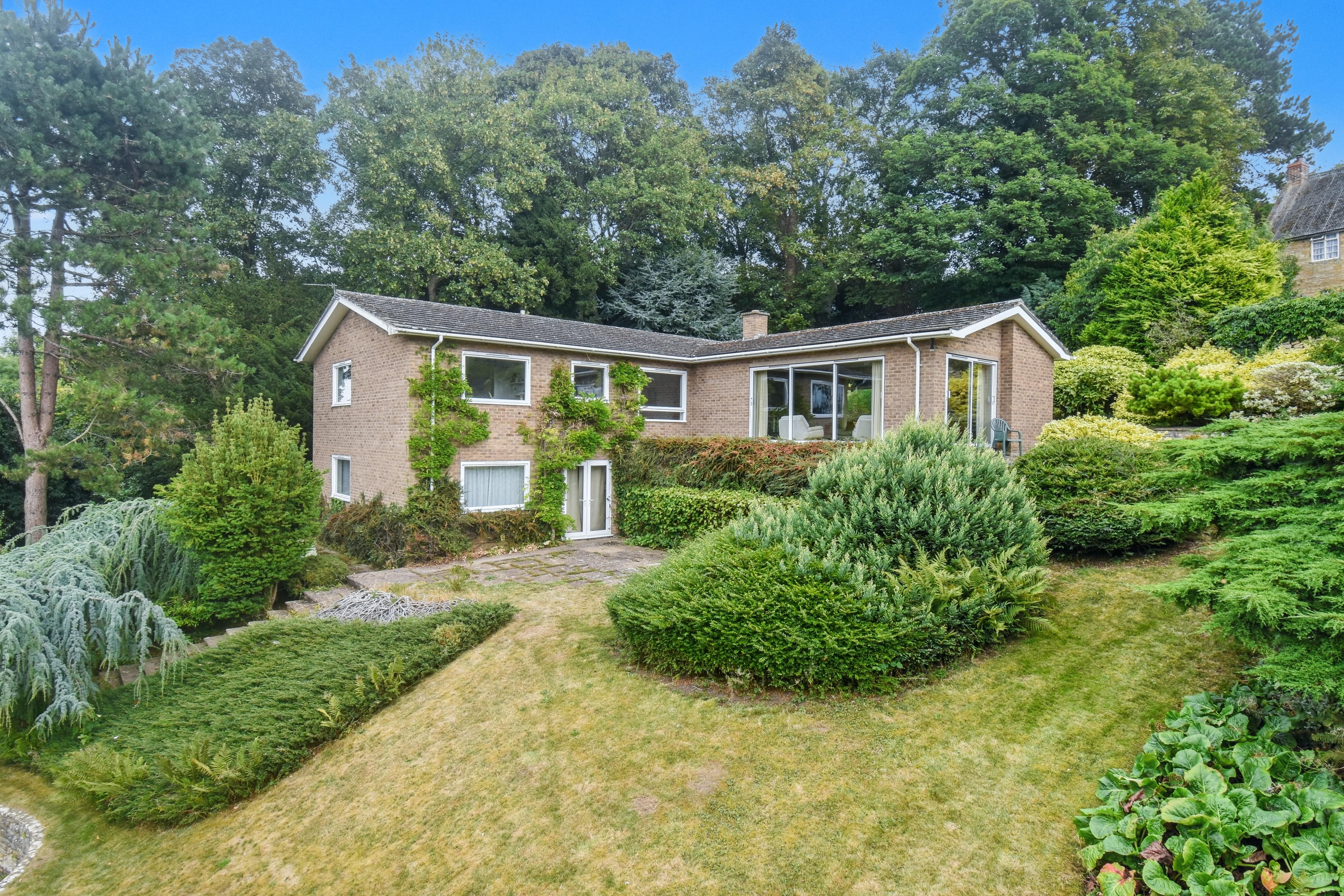 Nestled away in the much sought after village of Middleton, is this rarely available split level detached residence which occupies a highly established private plot that is approximately one acre in size and which enjoys stunning views over the Welland Valley. Having been designed and built in the 1970’s by the family that still own the property today, this rarely available family home provides highly unique accommodation to include a reception porch, entrance hall, cloakroom/WC, a superb 26’ living room is the perfect place to enjoy the wonderful well maintained tiered gardens and magnificent views beyond. There is also a dining room, fitted kitchen/breakfast room, utility room, side porch, two bedrooms and shower room to the ground floor. Stairs led down from an inner hallway to provide access to two further bedrooms and bathroom at the lower level. Upon entry to the property’s impressive frontage the first thing to be noticed is the highly private, established setting with a variety of trees, shrubs and bushes set to either side of the driveway which provides OFF ROAD PARKING for several vehicles and there is a DOUBLE GARAGE that has been converted to a garden room that has power, light and water available, to the rear of this highly versatile space is a log store. The gardens wrap around to either side, and in our opinion are a particular feature of the property given their thoughtful design and maturity and as they also include several terraced seating areas complimented by two areas of lawn, a swimming pool with pool house to provide a dressing and sauna space, garden pond, storage facilities and feature well.