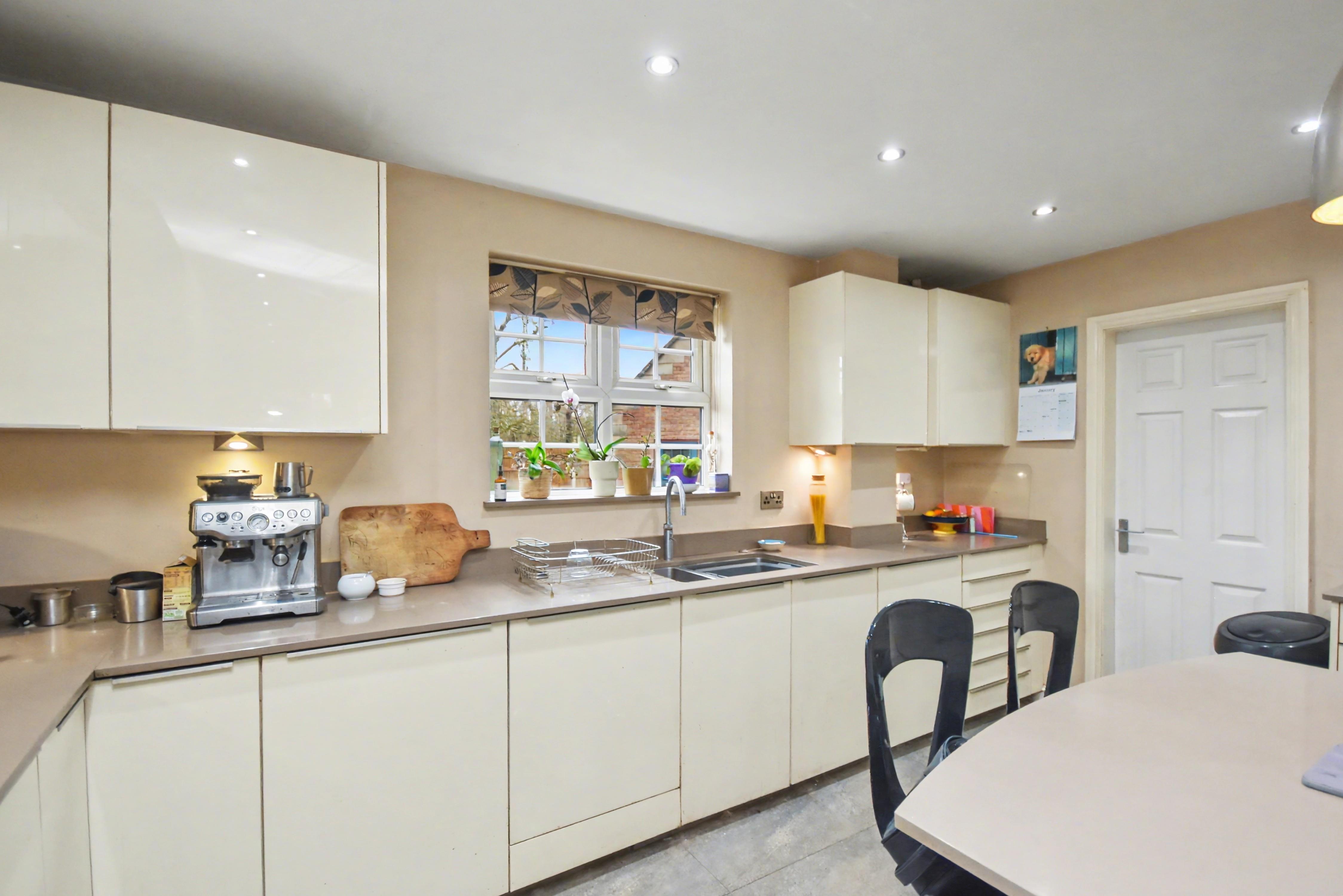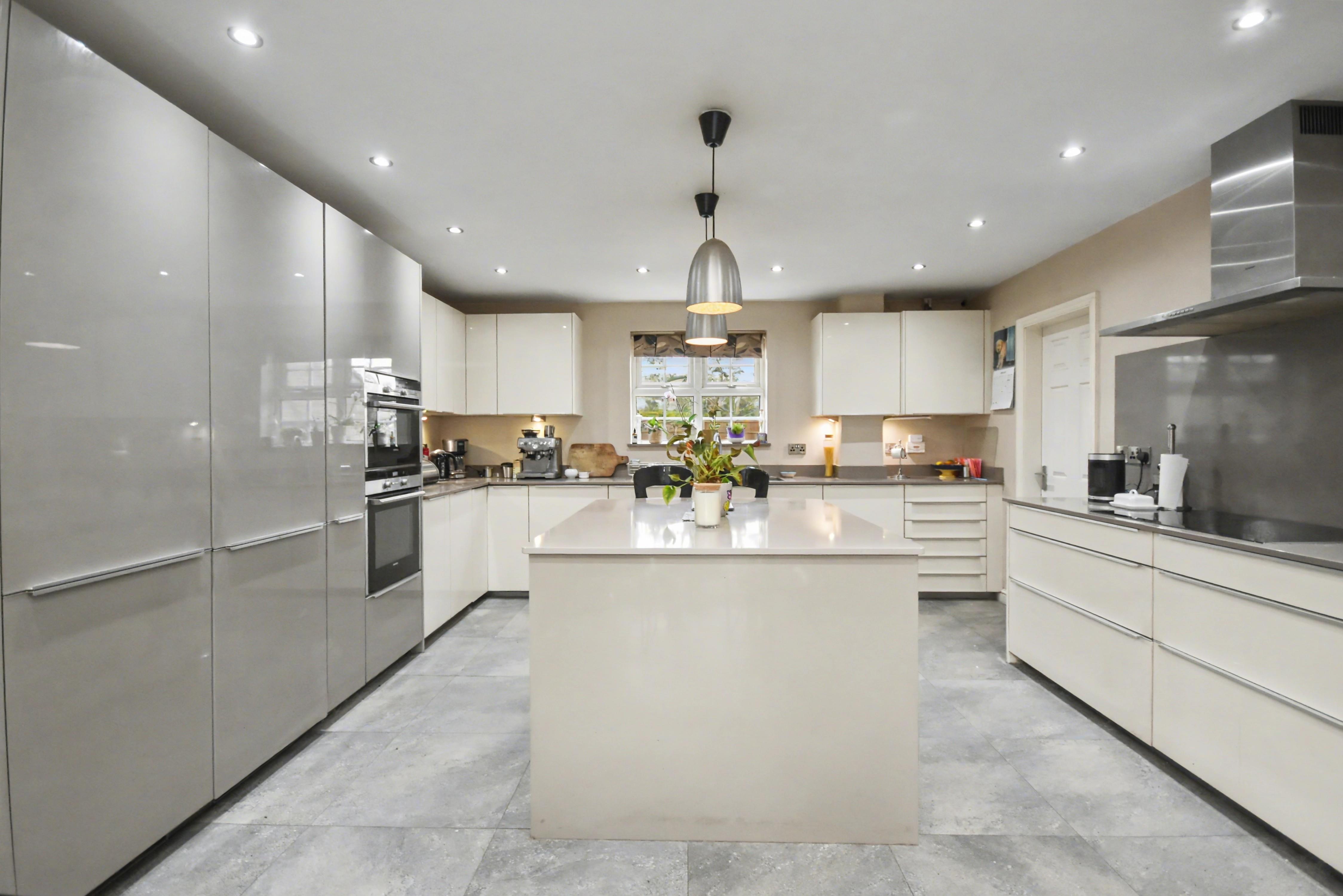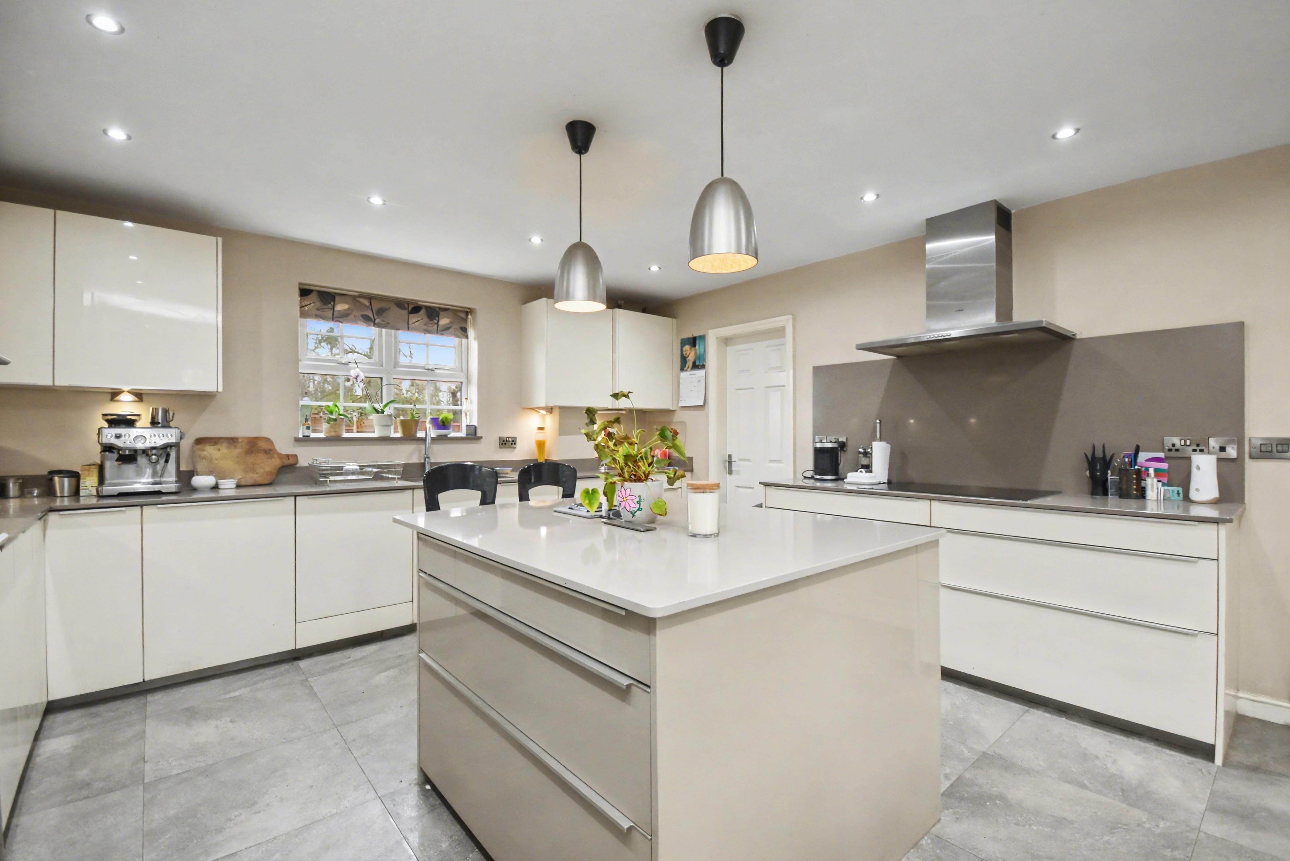 The well planned accommodation comprises a ground floor cloakroom WC, three reception rooms with feature fireplaces to both the lounge and dining room, and a study family room. The impressive 19’6” x 14’6” kitchen breakfast room is luxuriously appointed, featuring a statement central island, Quooker boiling water tap, and a comprehensive range of high quality integrated appliances. This space is further complemented by a separate utility room and a conservatory.
