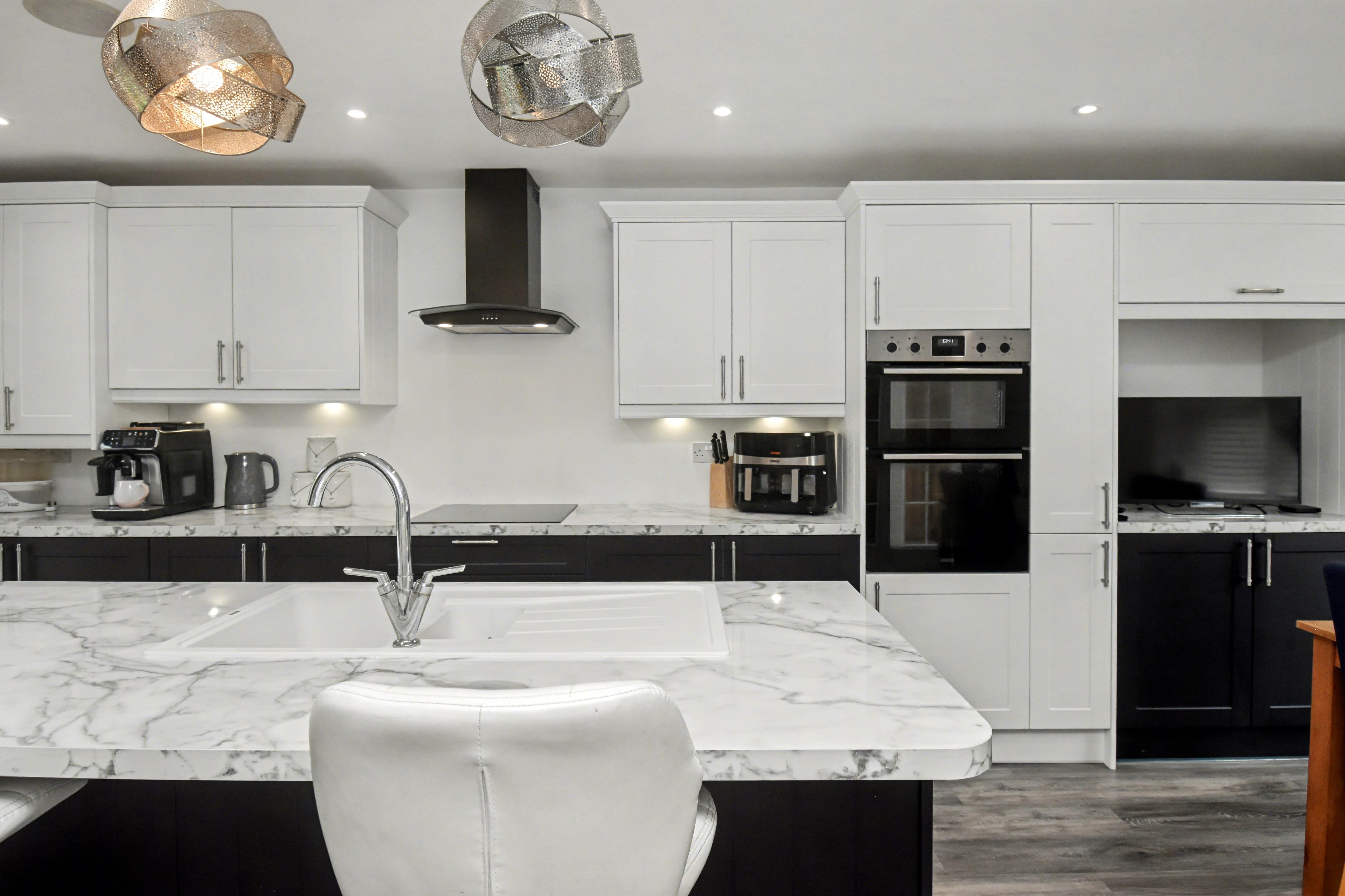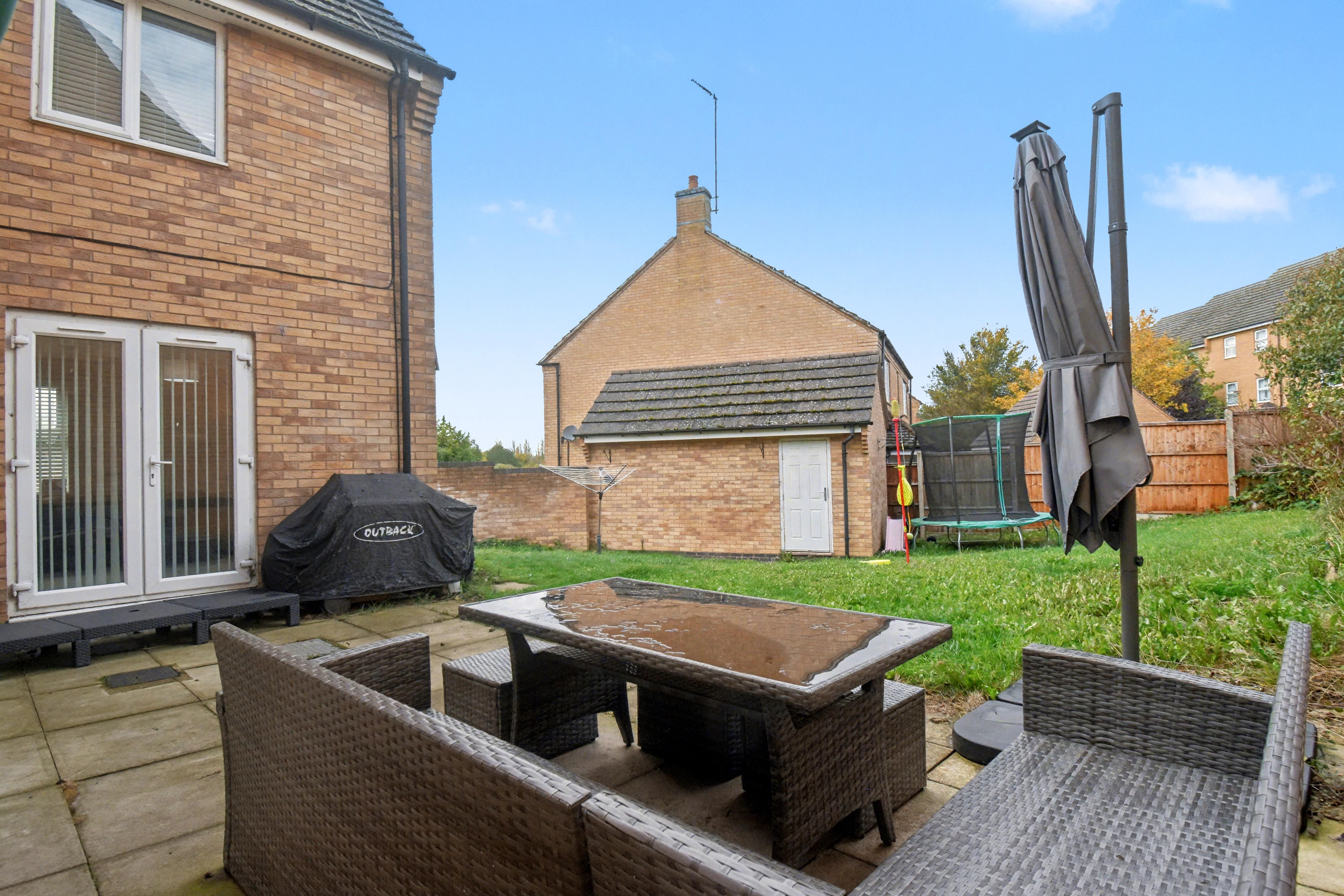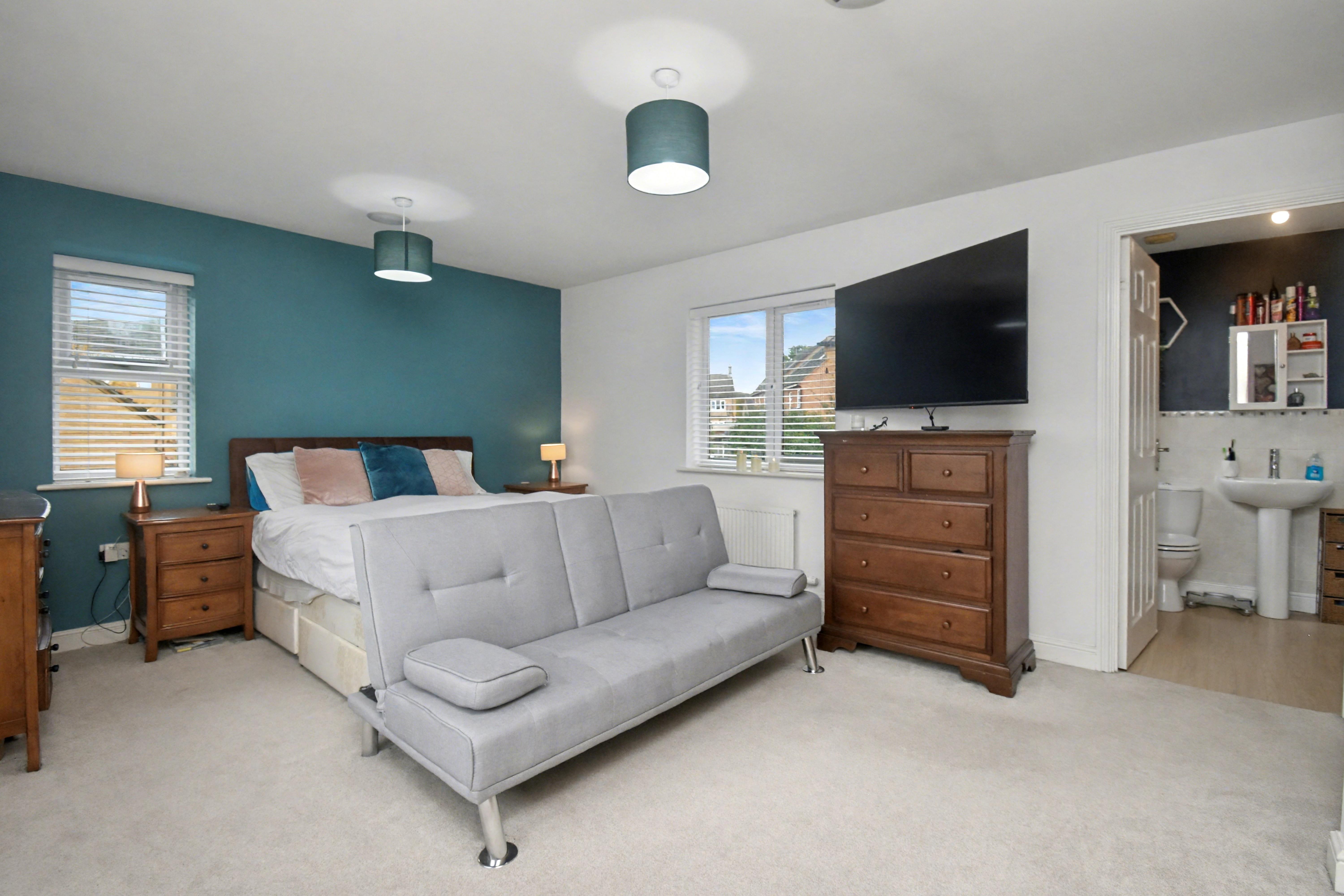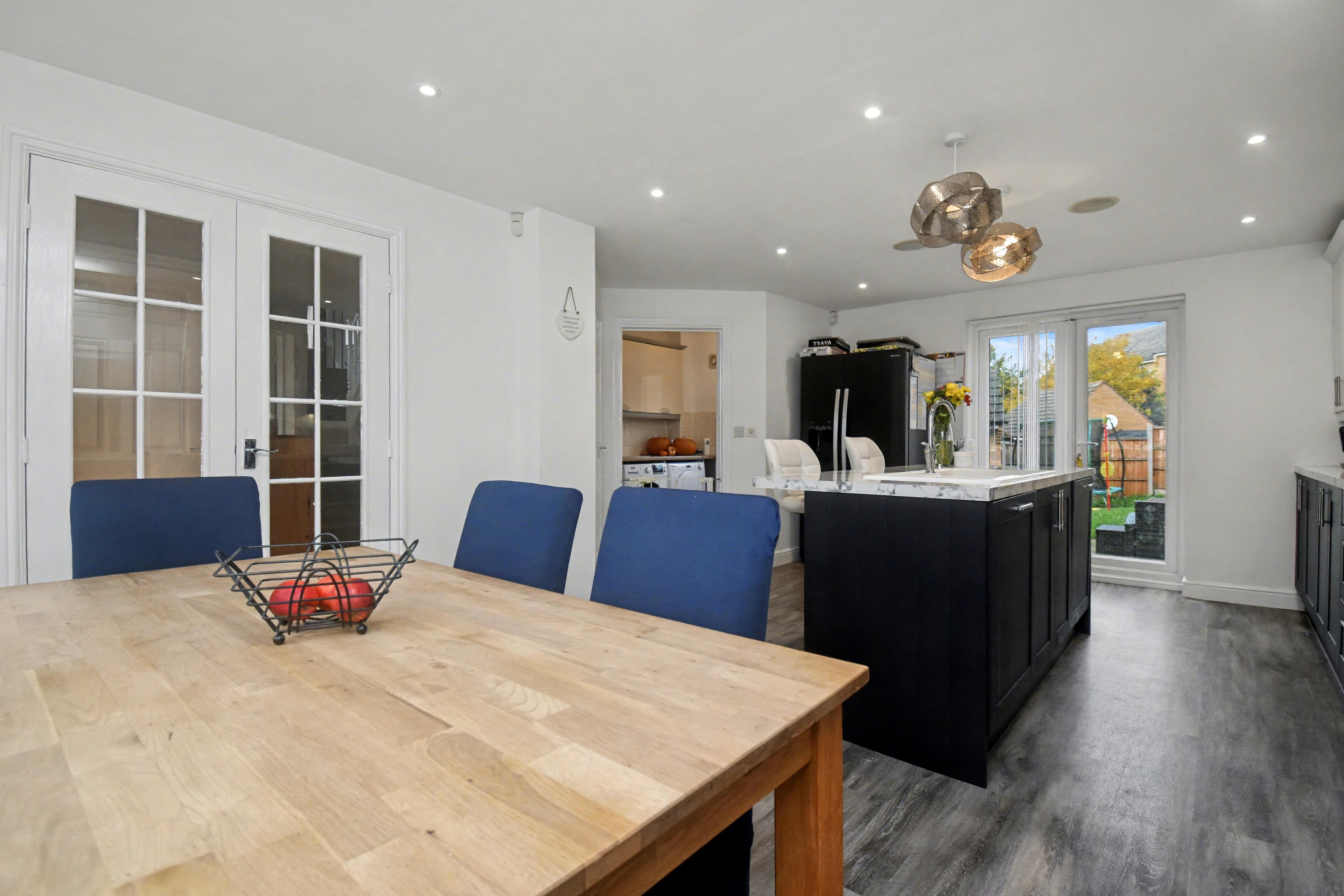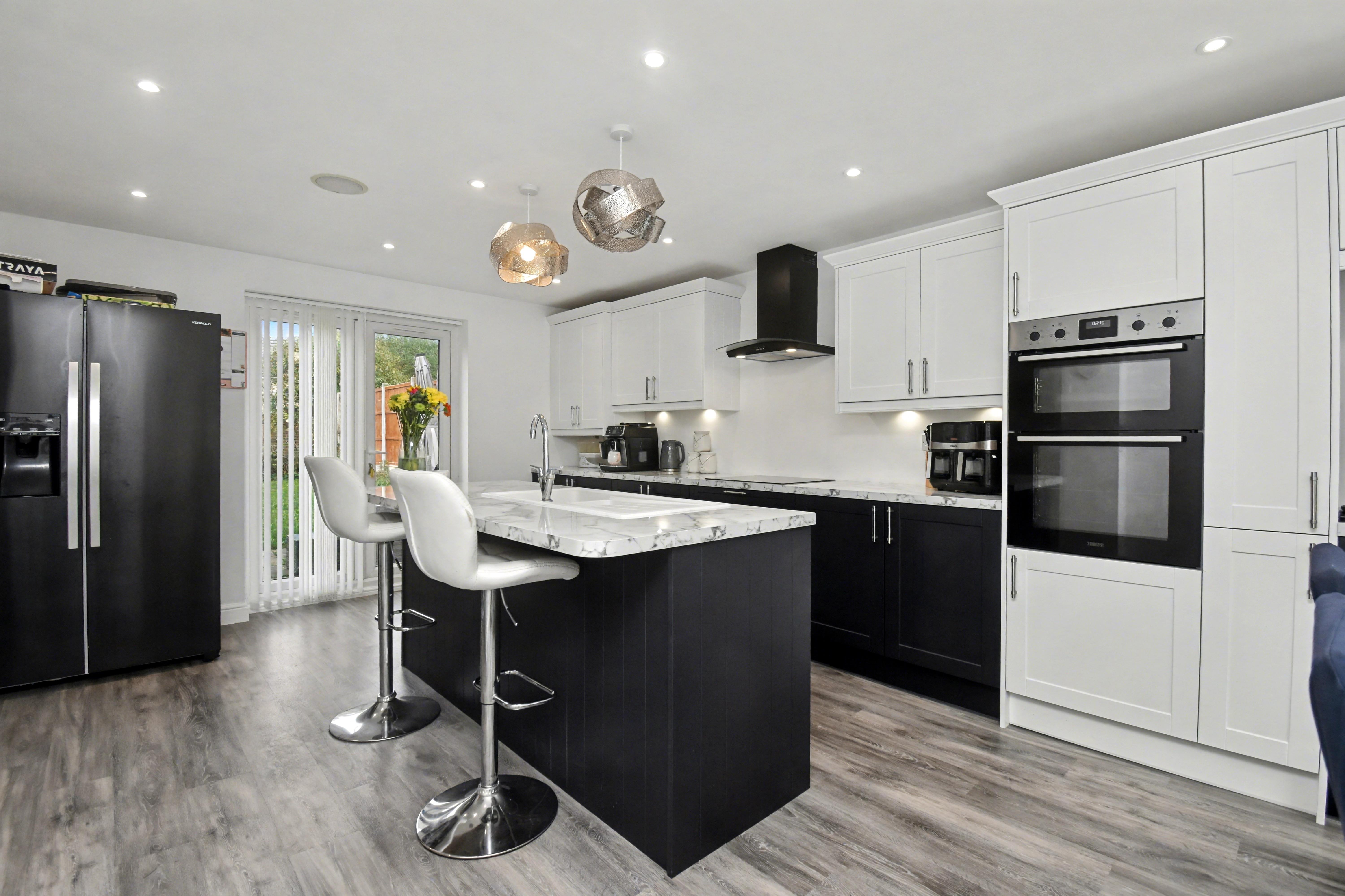 Upstairs, you will find four well-proportioned bedrooms, each benefiting from fitted wardrobes. The luxurious master suite boasts its own en-suite shower room, while the remaining bedrooms are served by a modern family bathroom. Outside, the property continues to impress with a large, fully enclosed rear garden that is mainly laid to lawn with a generous patio area, ideal for outdoor dining and relaxation. There is also access to a detached garage and private driveway, providing ample off-road parking. With its prime location, stylish interiors, and generous living space, early viewing is strongly recommended to fully appreciate all that this exceptional home has to offer.