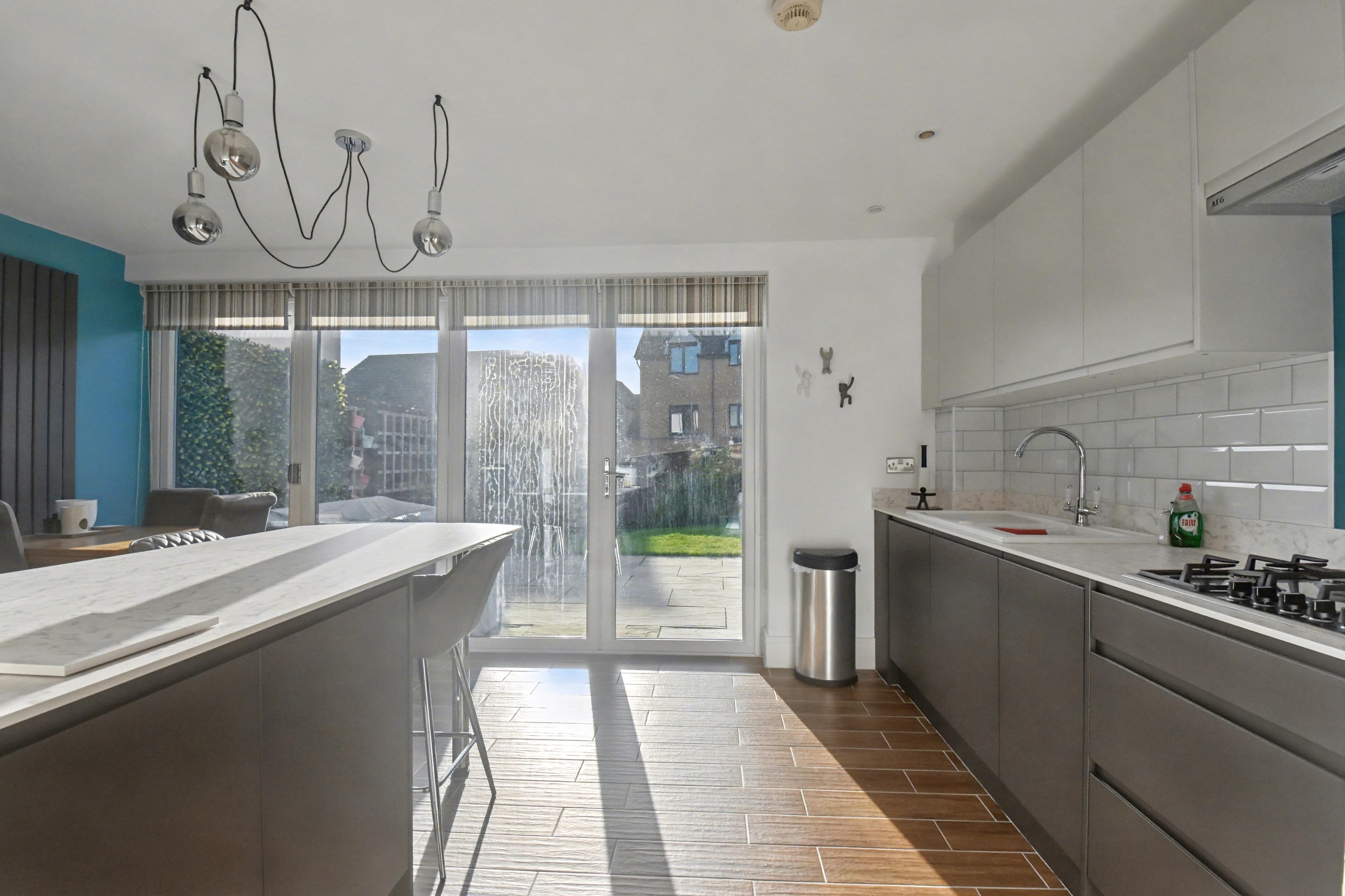The ground floor comprises an inviting entrance hall with a useful storage cupboard, a cloakroom / WC, a spacious living room, and a beautifully refitted kitchen / dining room complete with integrated appliances and bi-fold doors opening out to the rear garden. Upstairs features three bedrooms, including a master bedroom with built in wardrobes and an en-suite shower room. A stylish family bathroom serves the remaining bedrooms. Outside, the property benefits from a driveway providing off road parking for two vehicles. The rear garden is mainly laid to lawn with a large patio area with pergola, offering a pleasant and low maintenance area to enjoy the outdoors. Early viewing is highly recommended to avoid disappointment.