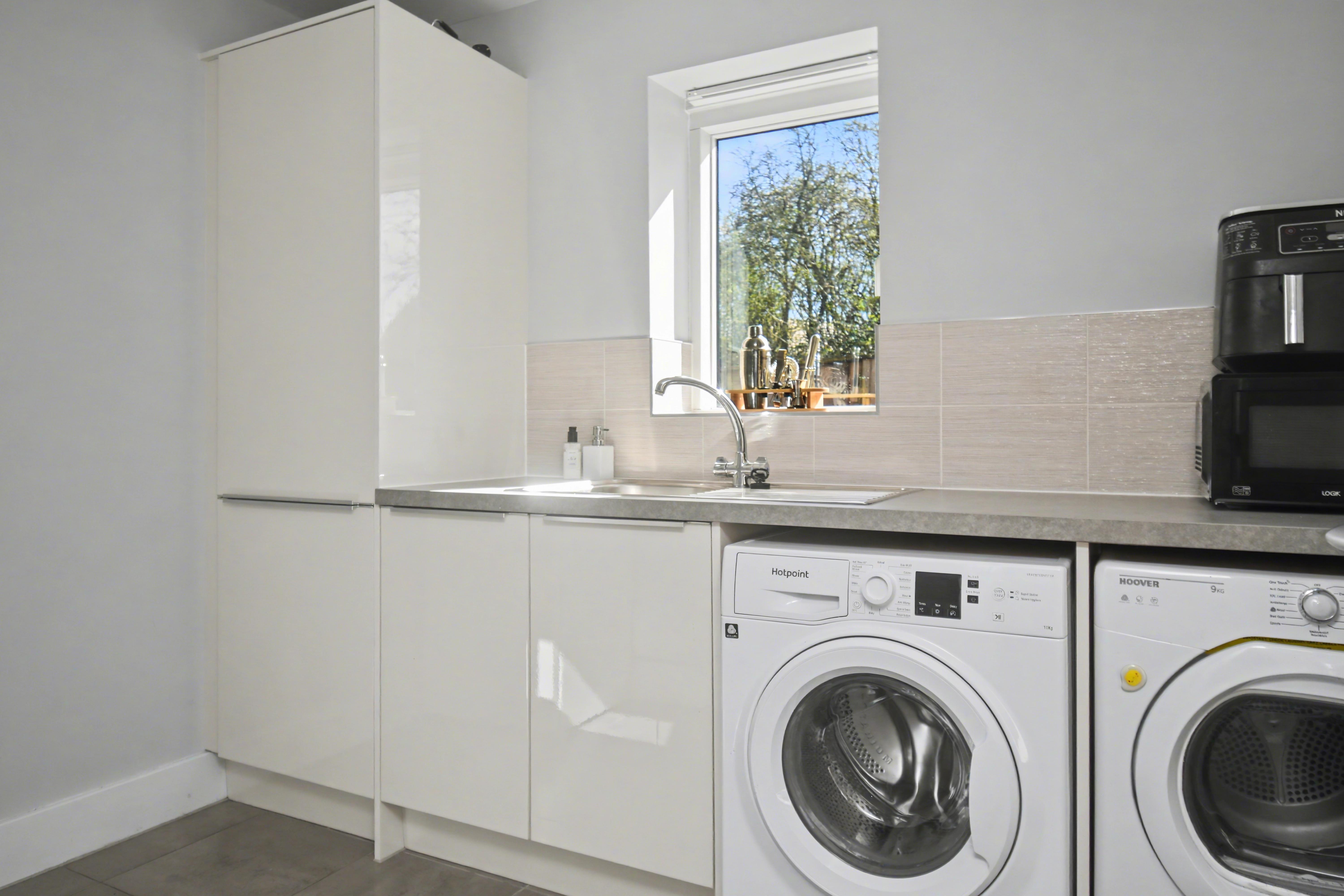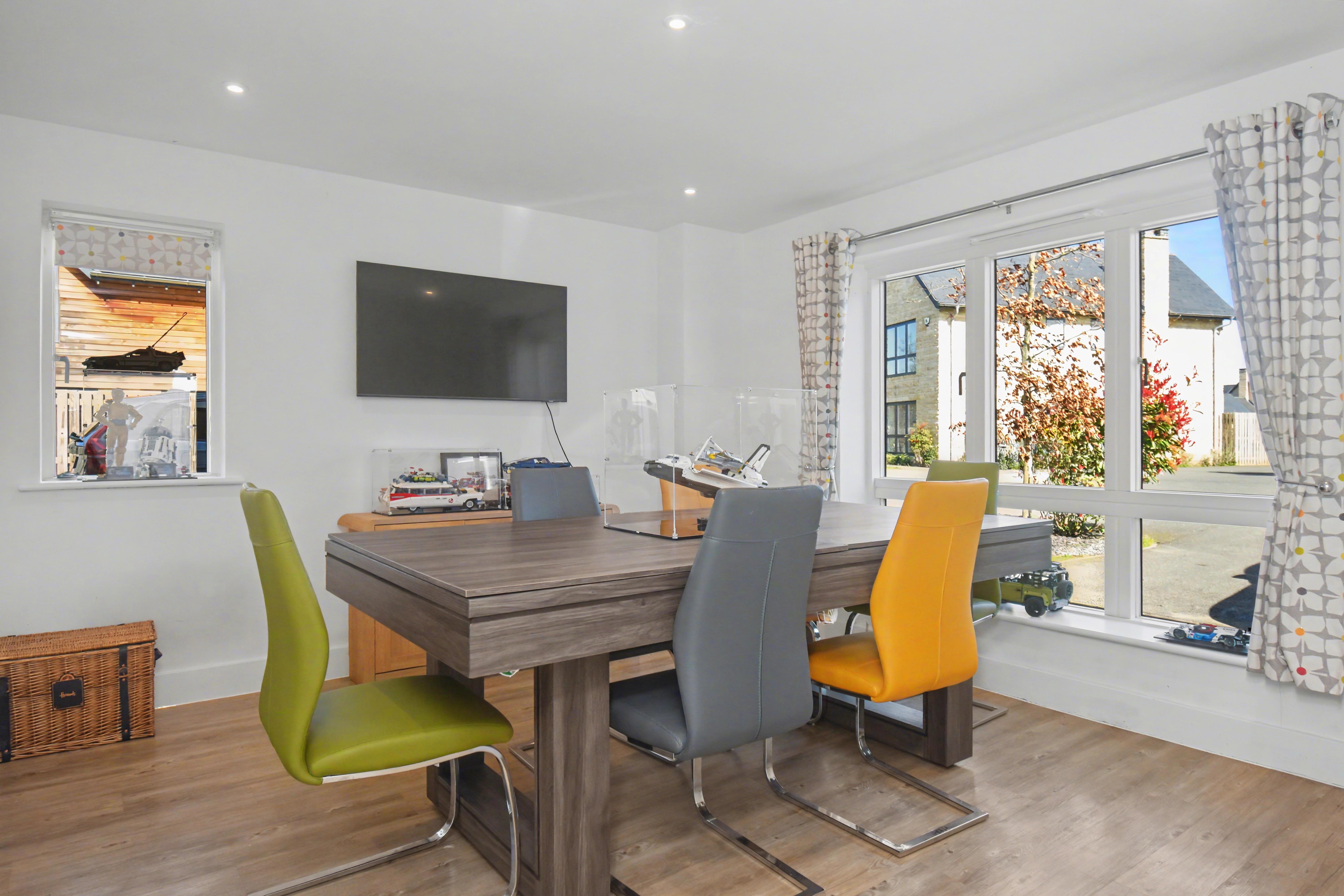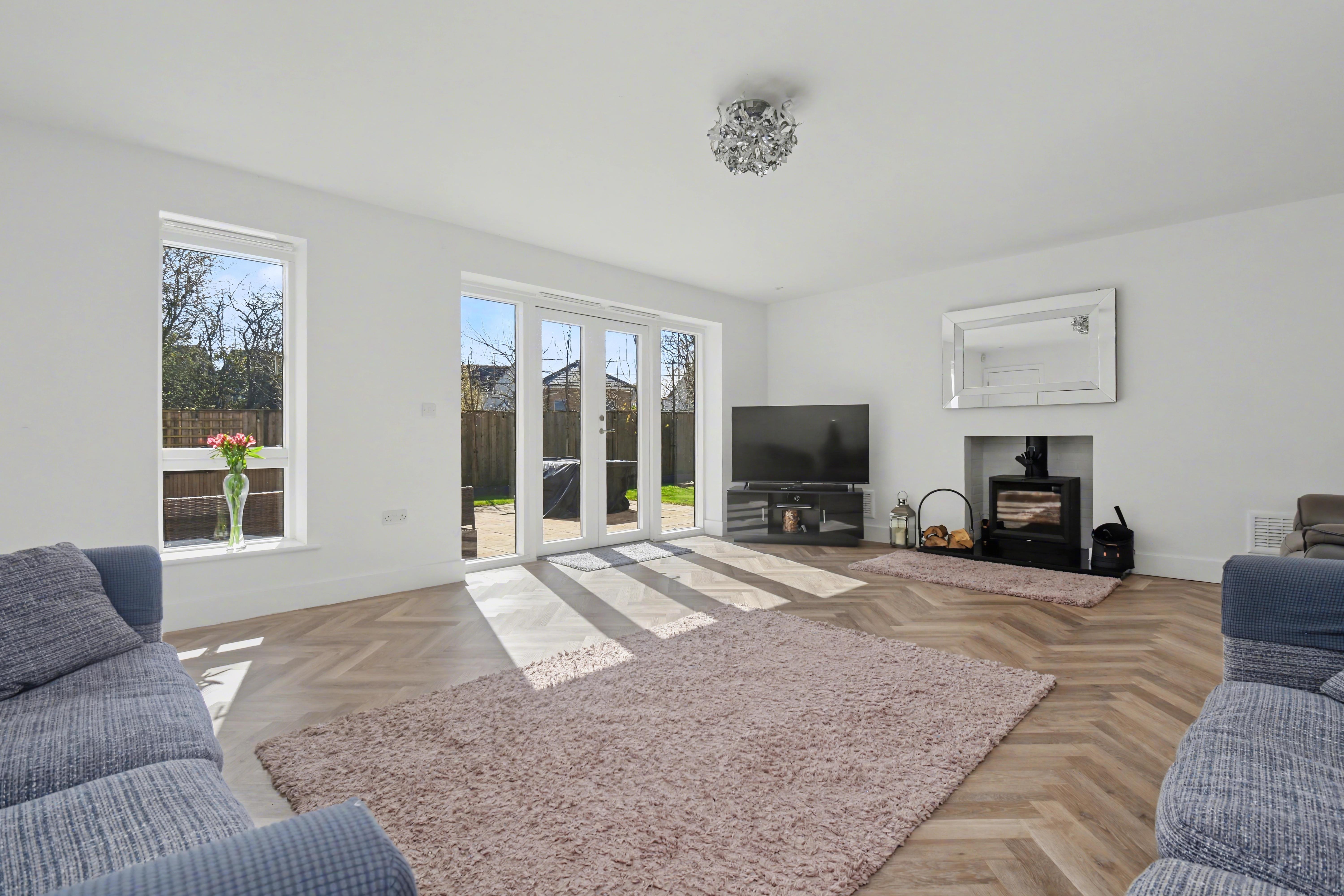 This beautifully presented family home provides accommodation to include a highly spacious and imposing reception hall, cloakroom, w/c, living room with a wood burner, separate dining room, a study room, utility room and there is a quite superb, excellent sized kitchen/breakfast room with an island providing additional seating and boasting quartz work surfaces and integrated appliances. There are also French doors leading onto the rear garden.