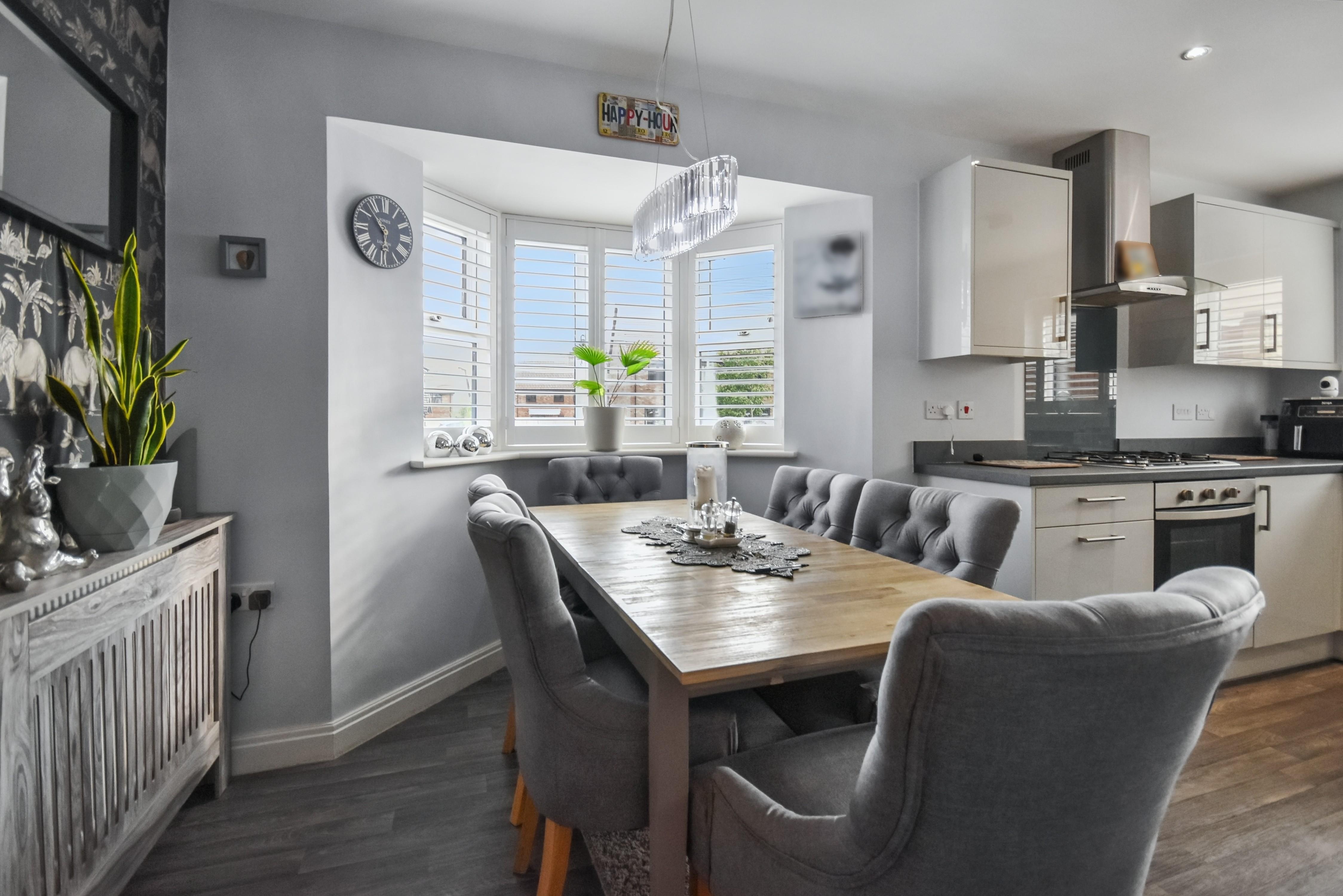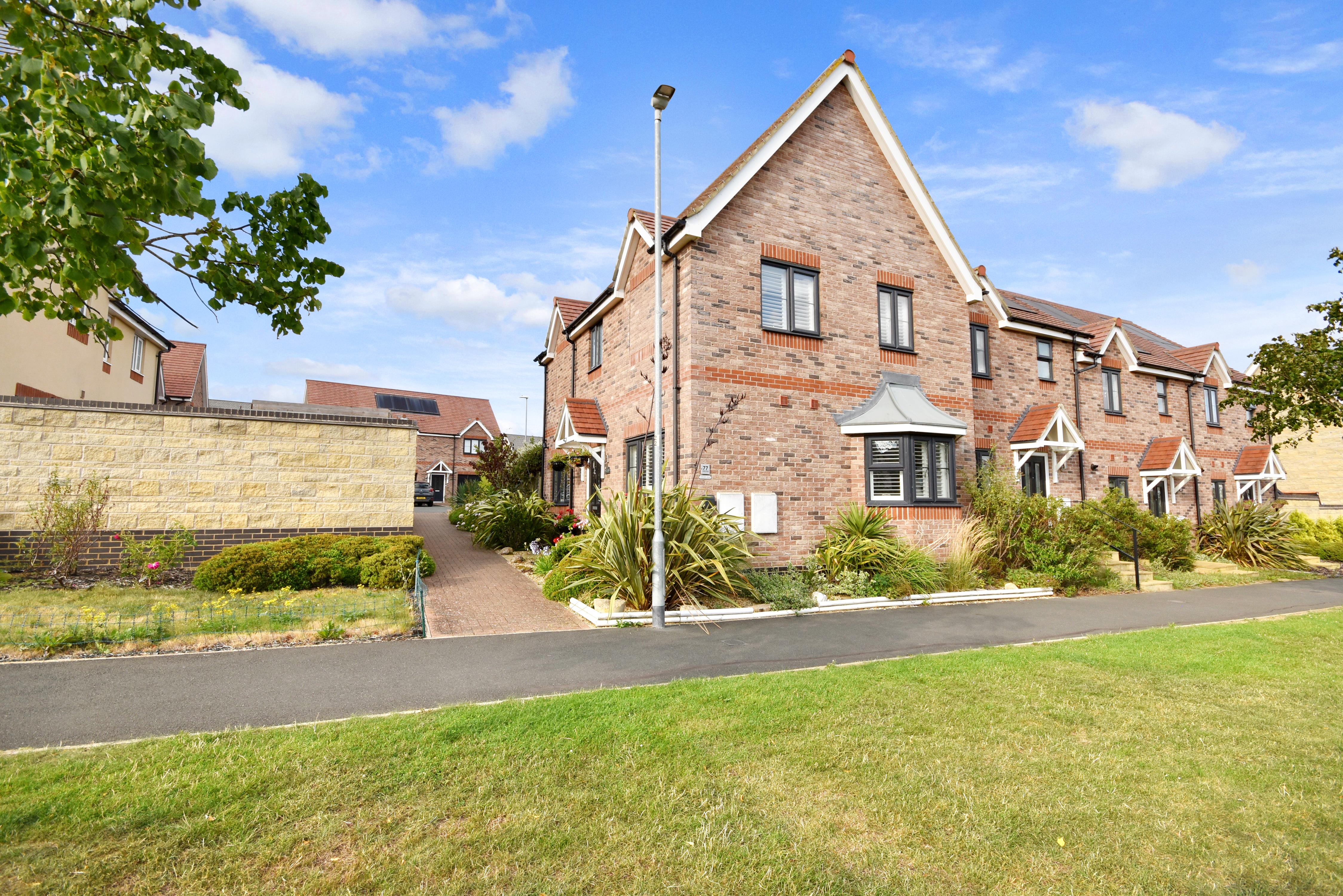 The ground floor features a welcoming entrance hall, a convenient cloakroom/WC, a bright and inviting lounge with feature media wall and electric fireplace, a superb kitchen and dining room fitted with integrated appliances, double oven, hob and dishwasher complemented by a separate utility room with space for washing machine, tumble dryer and wine fridge. Upstairs, the master bedroom benefits from its own en-suite, while two further bedrooms are served by a stylish family bathroom, with the third bedroom benefiting from fitted wardrobes. Outside, the property enjoys attractive mature gardens to the front and rear, a driveway providing off-road parking for two vehicles, and an electric car charging point. Energy Rating - B and Council Tax Band - C. Priors Hall Urban and Civic charges of £278 per annum. Early viewing is strongly recommended to fully appreciate the quality and location of this outstanding property.