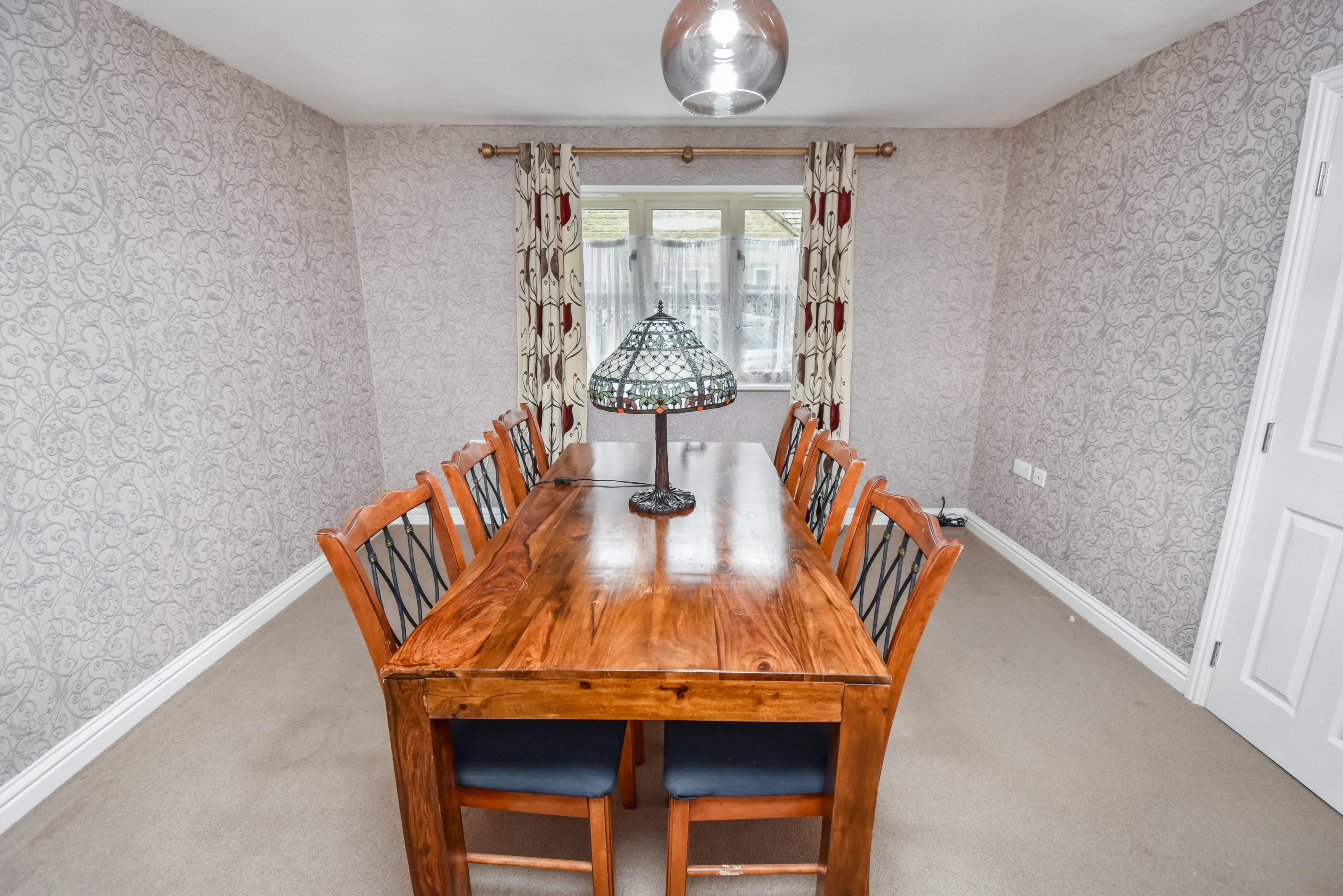 Being offered for sale with NO CHAIN this quite unique property boasts an attractive floorplan and provides excellent sized living accommodation which would ideally suit a family. On entering this well presented home you will be greeted by an impressive reception hall, cloakroom/WC, a superb 18’ x 18’ living room with a wood burning stove set to a feature chimney breast, separate dining room, sitting/family room, study, a fitted kitchen with oven range and there is also a separate utility room. The first floor leads with a highly spacious landing to FOUR DOUBLE BEDROOMS with the master boasting en-suite facilities and a walk in dressing area which provides fitted hanging and drawer space. The guest bedroom also provides en-suite facilities and there is a separate four-piece family bathroom. Outside, an easy maintenance frontage provides OFF ROAD PARKING for three vehicles with an EV charging point set to the front of the GARAGE. The rear gardens are a particular feature as they are highly private due to the extremely mature setting they enjoy and boast a large lawned area that is complimented by established borders, patio areas and there is also space for a garden shed and greenhouse. In our opinion only by visiting this deceptively spacious property will its setting be truly appreciated; therefore, an early visit is highly advised! Energy Rating C. Council Tax Band F.