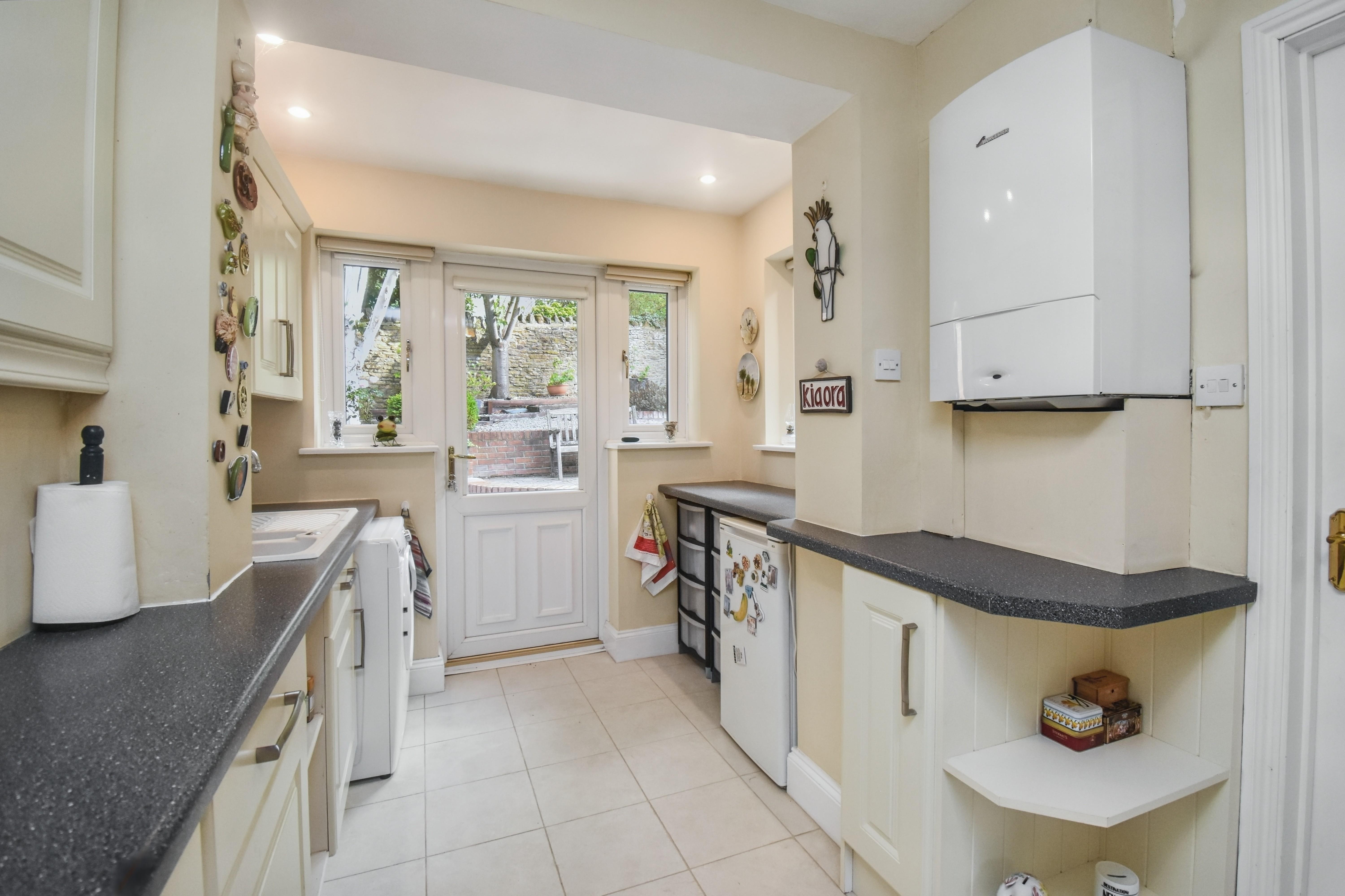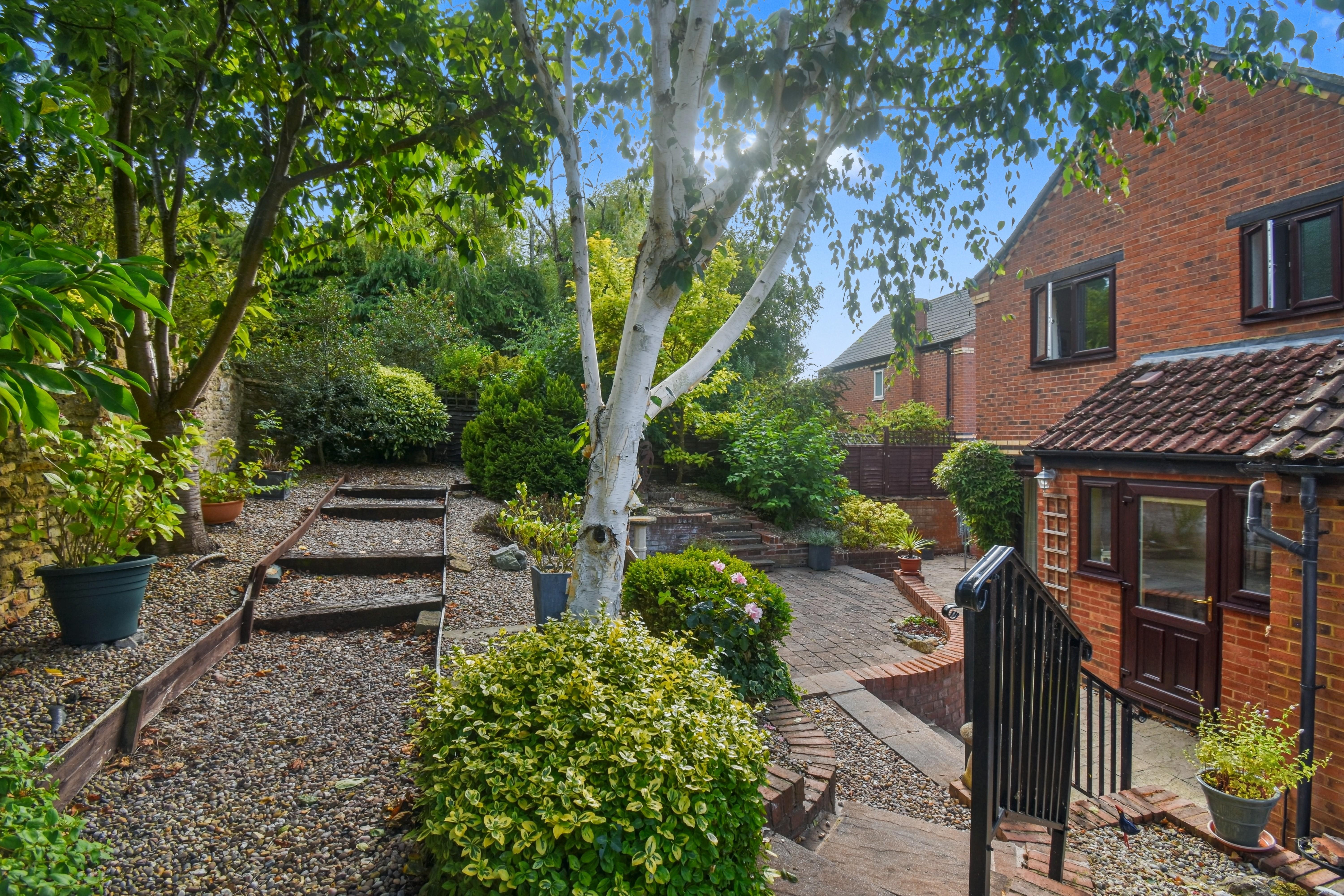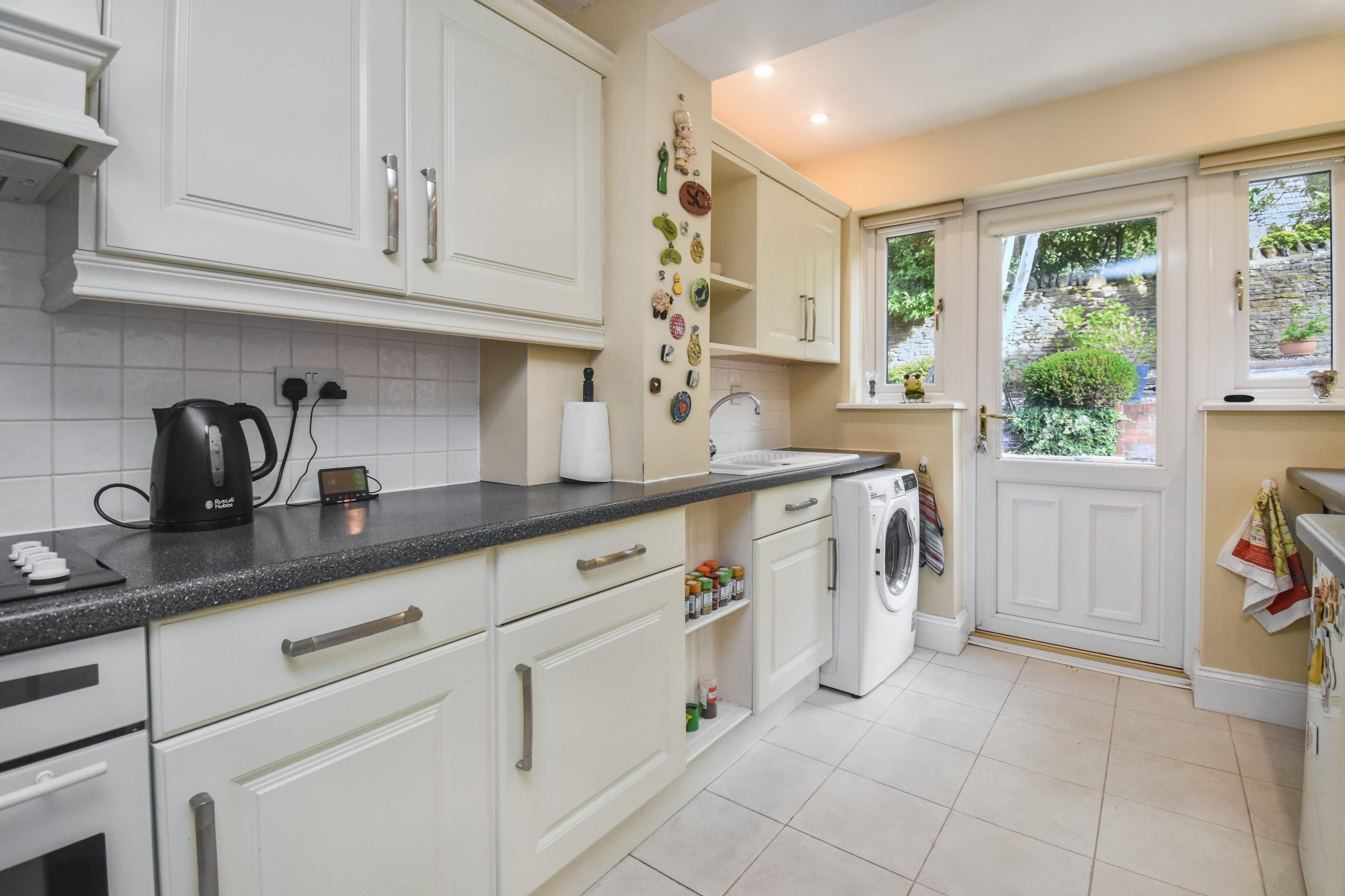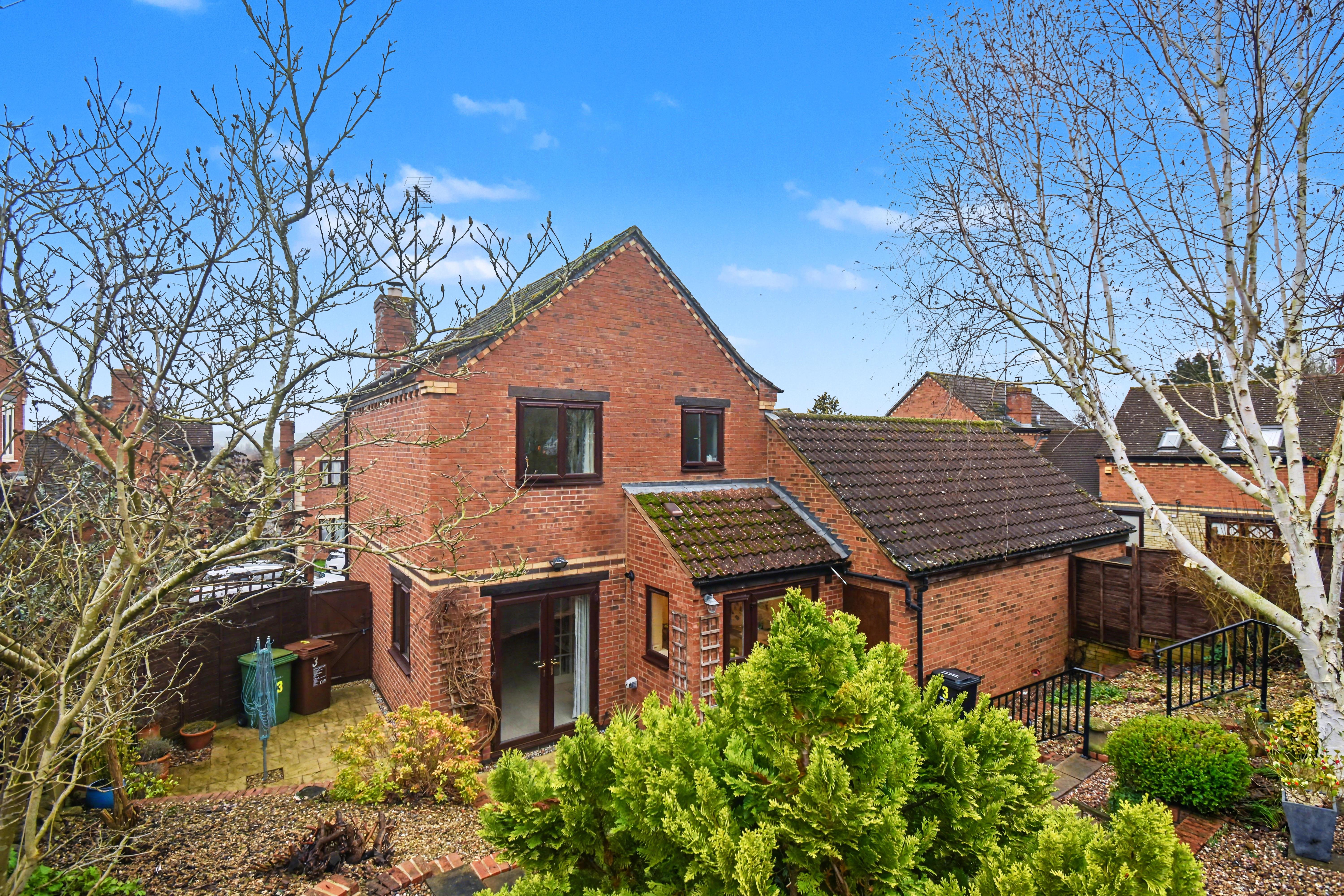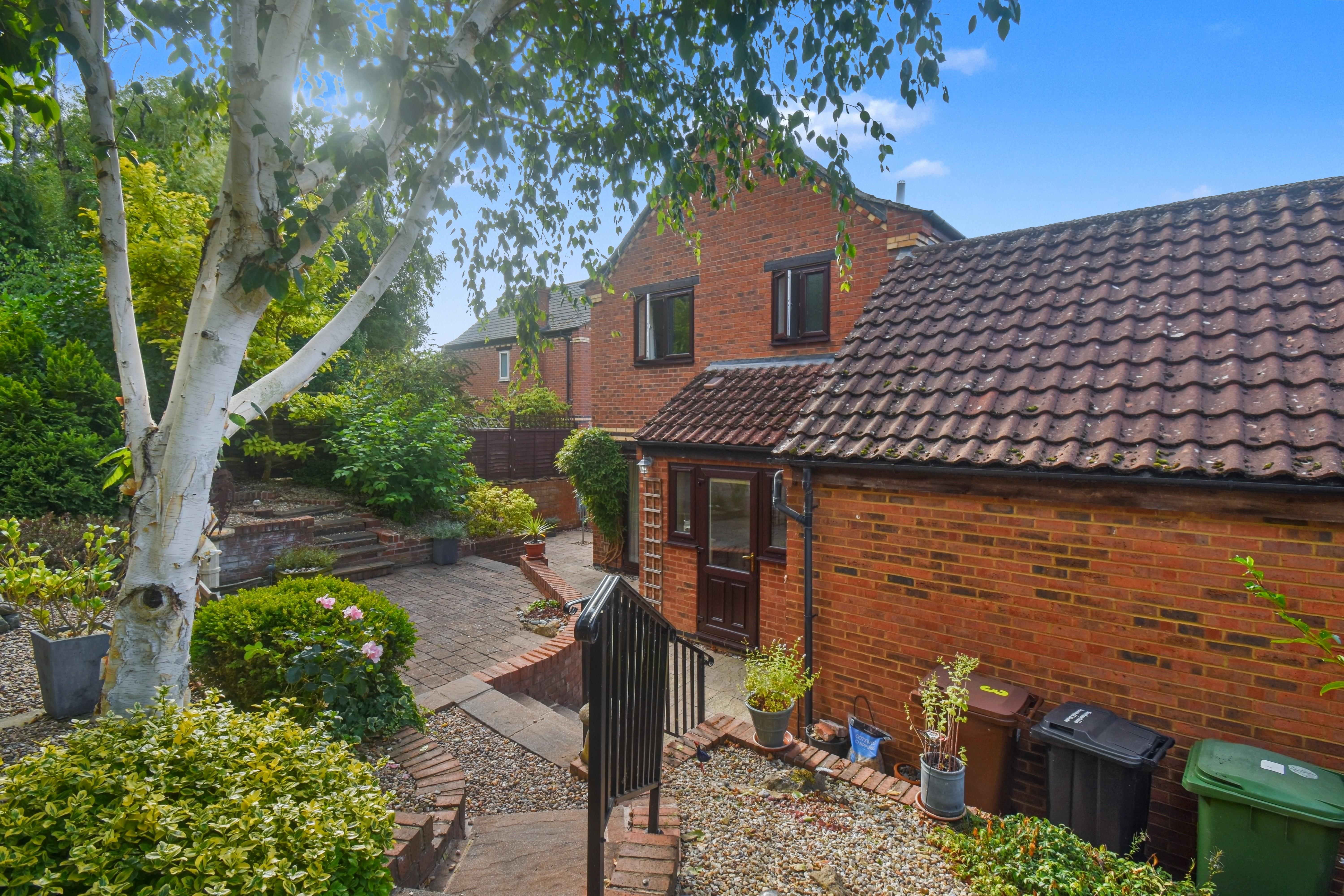 The home is set on an established and private plot and features a welcoming reception hall, a spacious living and dining room with French doors opening onto the rear garden, and a stylish, fitted, galley kitchen. On the first floor there are three bedrooms, with the master benefiting from fitted wardrobes, as well as a modern refitted family bathroom. Outside, the property enjoys a smart enclosed frontage with driveway parking for two vehicles leading to a single garage, that has been fitted with power, water and waste for a washing machine and provides an opportunity for conversion (subject to planning permissions). The west facing rear garden provides a peaceful and low-maintenance setting with mature landscaping and multiple elevated patio areas, ideal for enjoying the afternoon and evening sun. With its tranquil location, versatile accommodation and attractive plot, this home is certain to attract considerable interest, and early viewing is highly recommended.