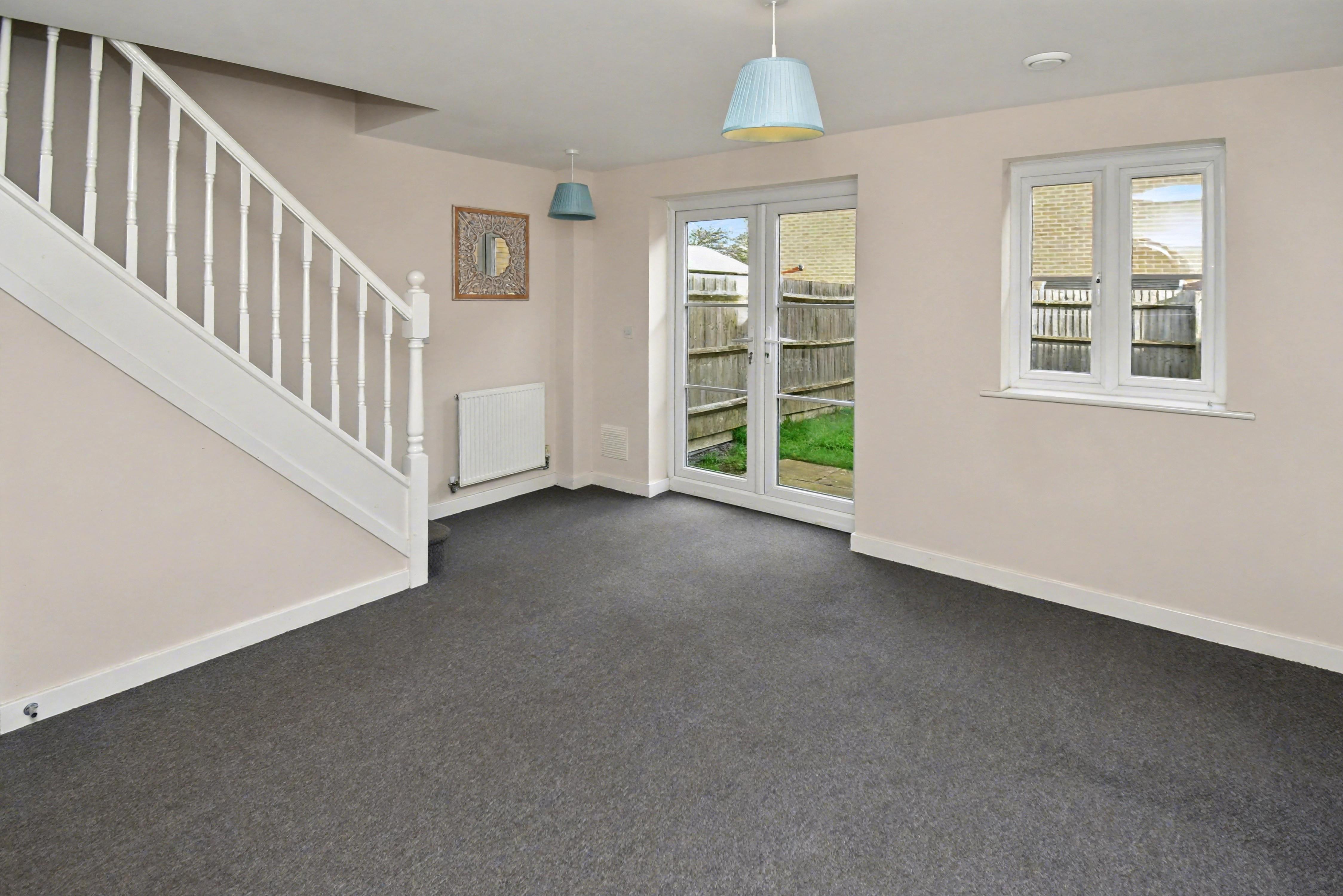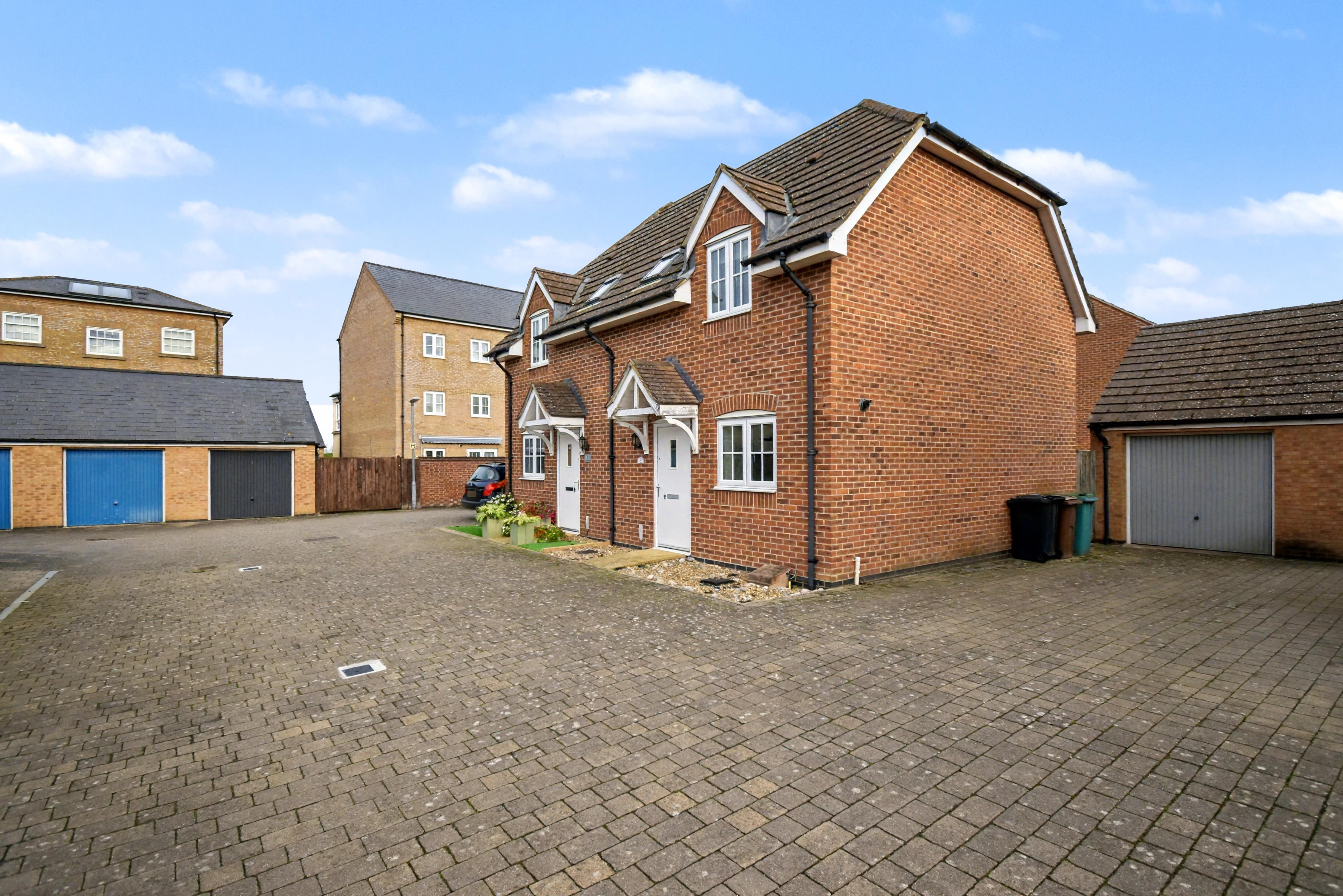 The property is nestled away within a private cul-de-sac and is set within walking distance to the local school, shops, and other amenities. Accommodation includes a reception hall, cloakroom w/c, a modern fitted kitchen, and a living/dining room with French doors leading on to the rear garden. The first floor provides TWO DOUBLE BEDROOMS, the master boasts an en-suite shower room and fitted wardrobes, in addition there is a separate bathroom. Outside, there is an open plan frontage with a driveway providing OFF ROAD PARKING leading to the GARAGE, whilst the rear is laid to lawn with a patio area. Energy rating C. Council Tax Band B. Priors Hall Urban and Civic charges apply - £280.80 per annum.