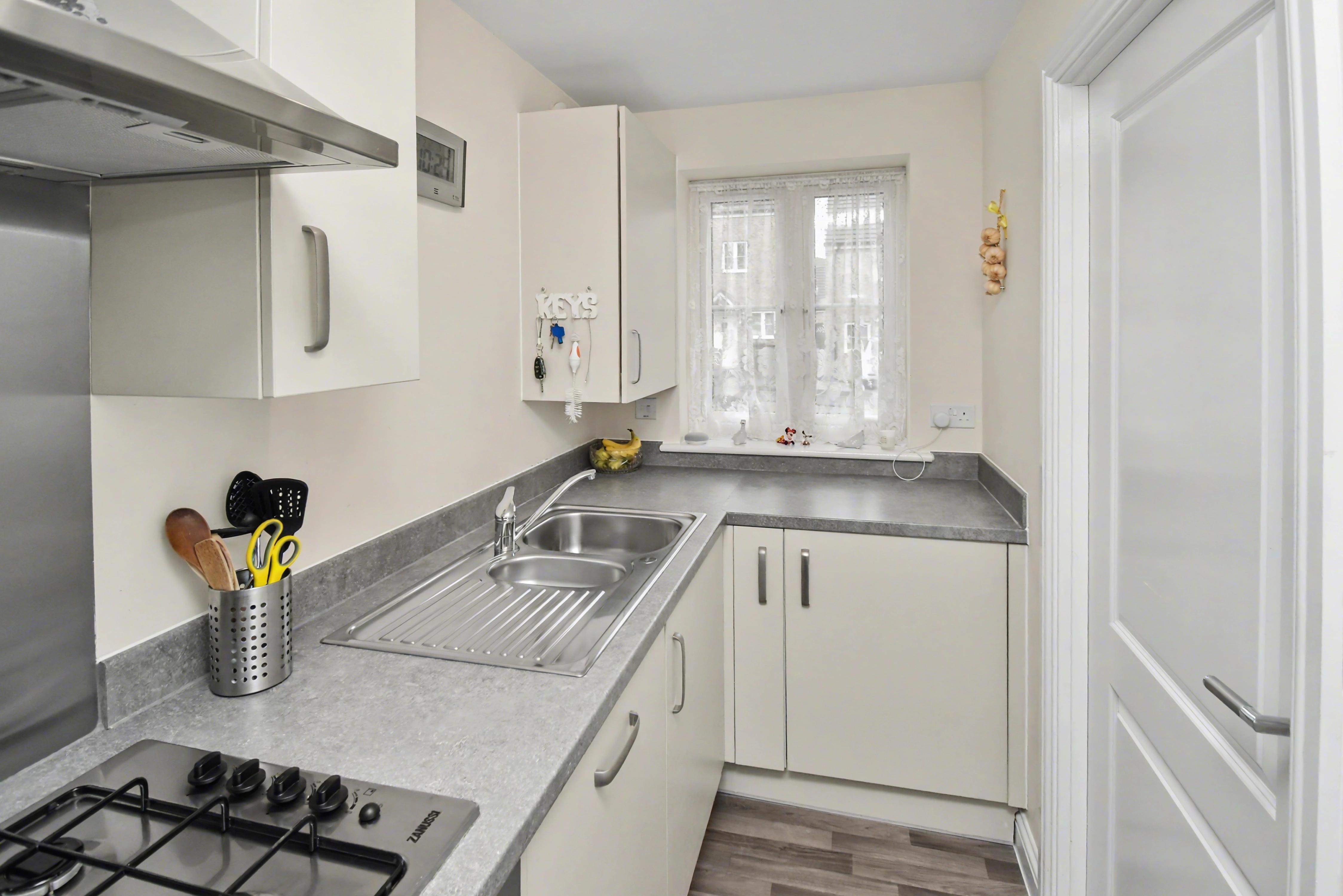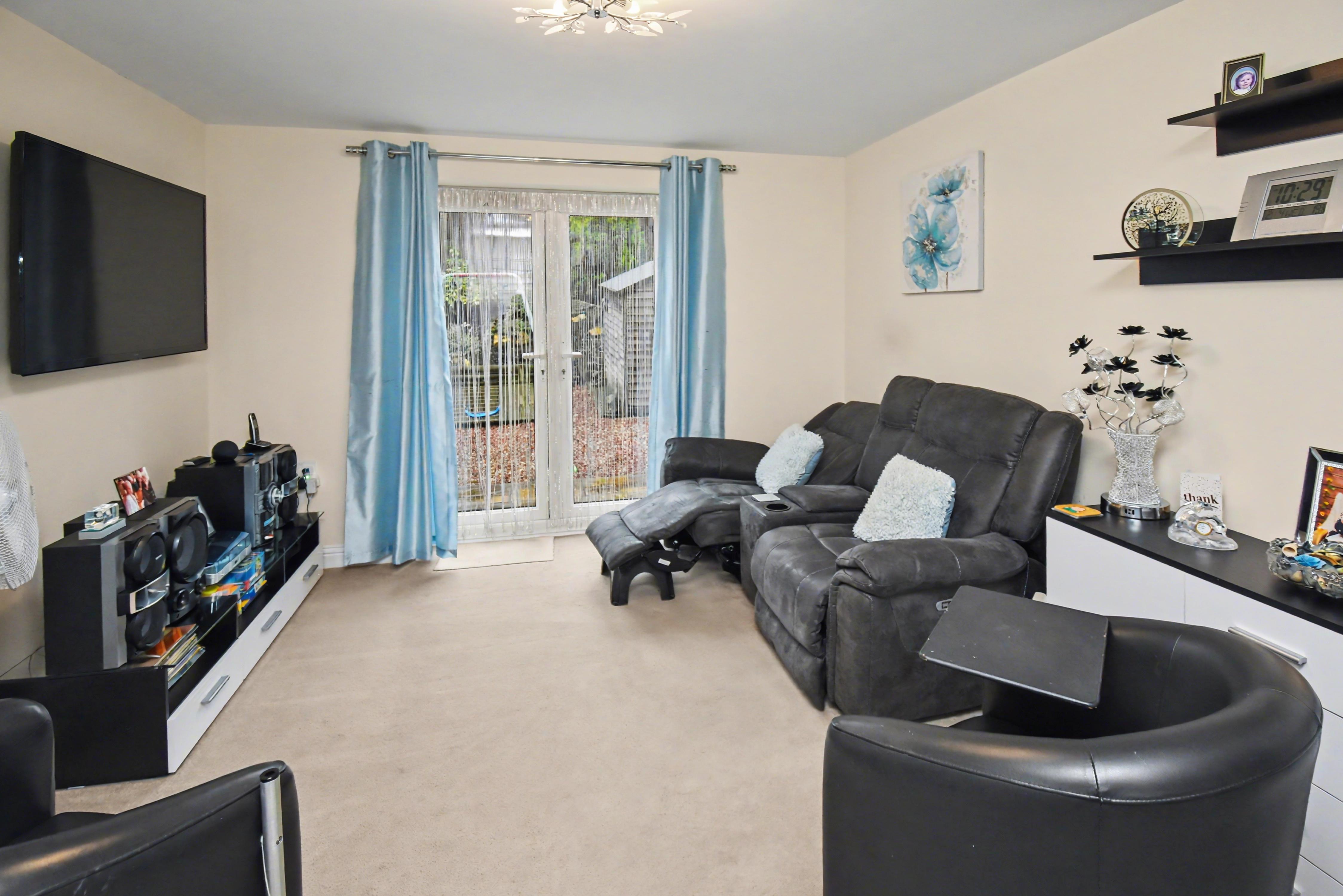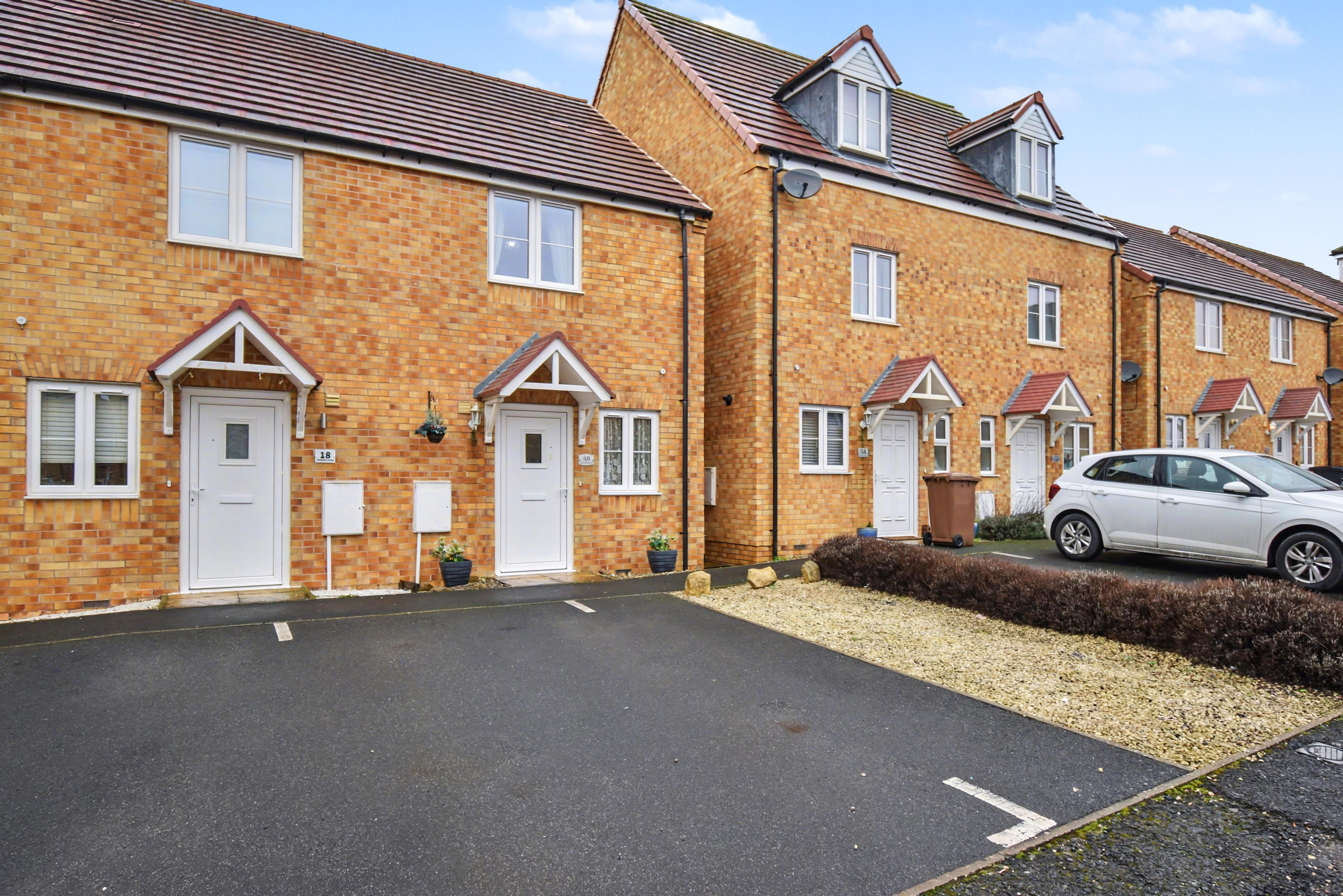 Accommodation includes an entrance hall, cloakroom w/c, a fitted kitchen with integrated appliances, and a large living dining room with French doors which overlook the rear garden. The first floor provides TWO DOUBLE BEDROOMS that boast fitted storage, and a family bathroom. Outside, there is an open plan frontage which provides OFF ROAD PARKING, whilst the rear enjoys an easy maintenance landscaped garden with a pleasant, elevated rockery style bank with shrubs inset, this is fully enclosed with gated access to the side. Early viewings are highly advised! Energy rating B. Estate charge applicable of approx. £200 per annum. Council Tax Band B.