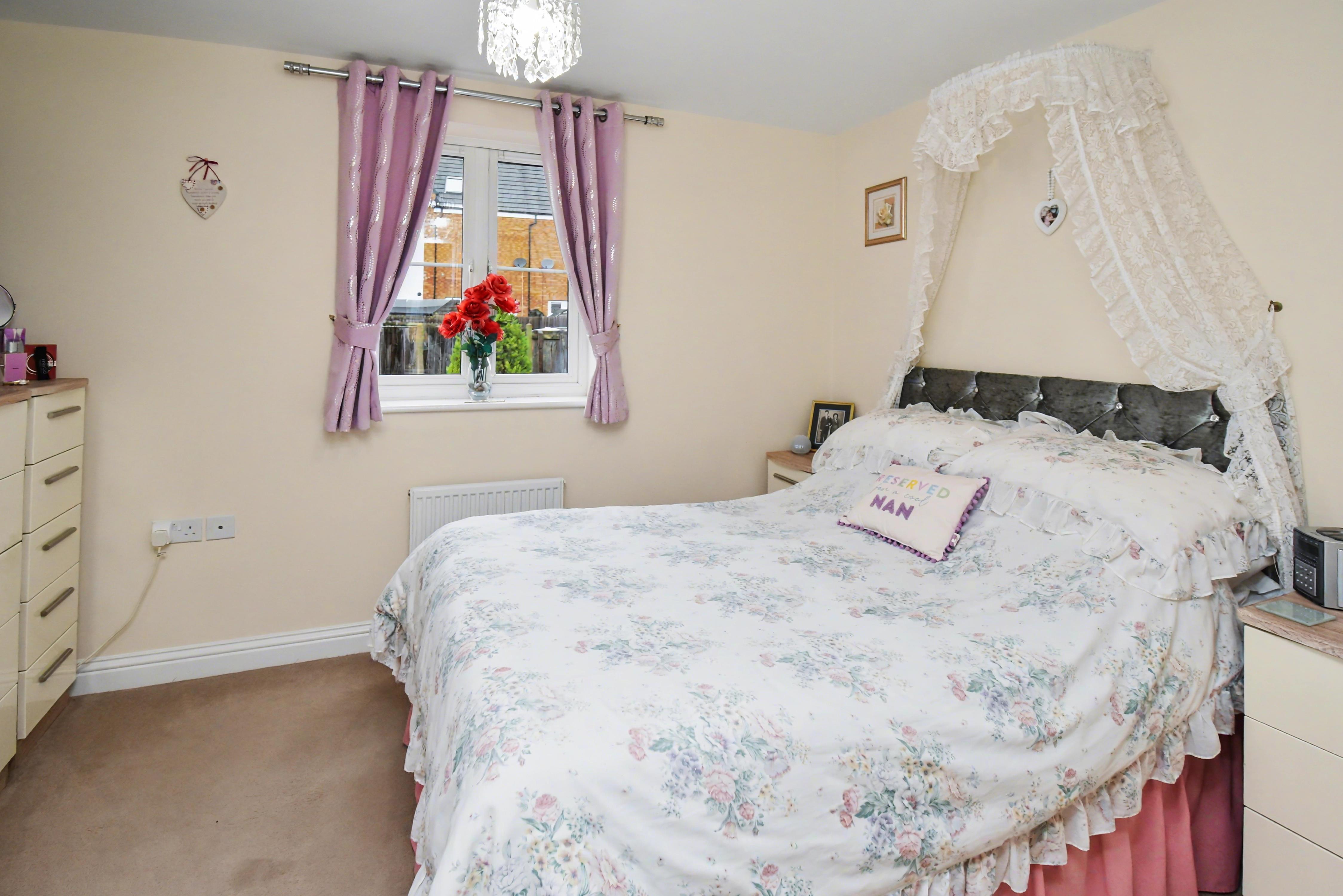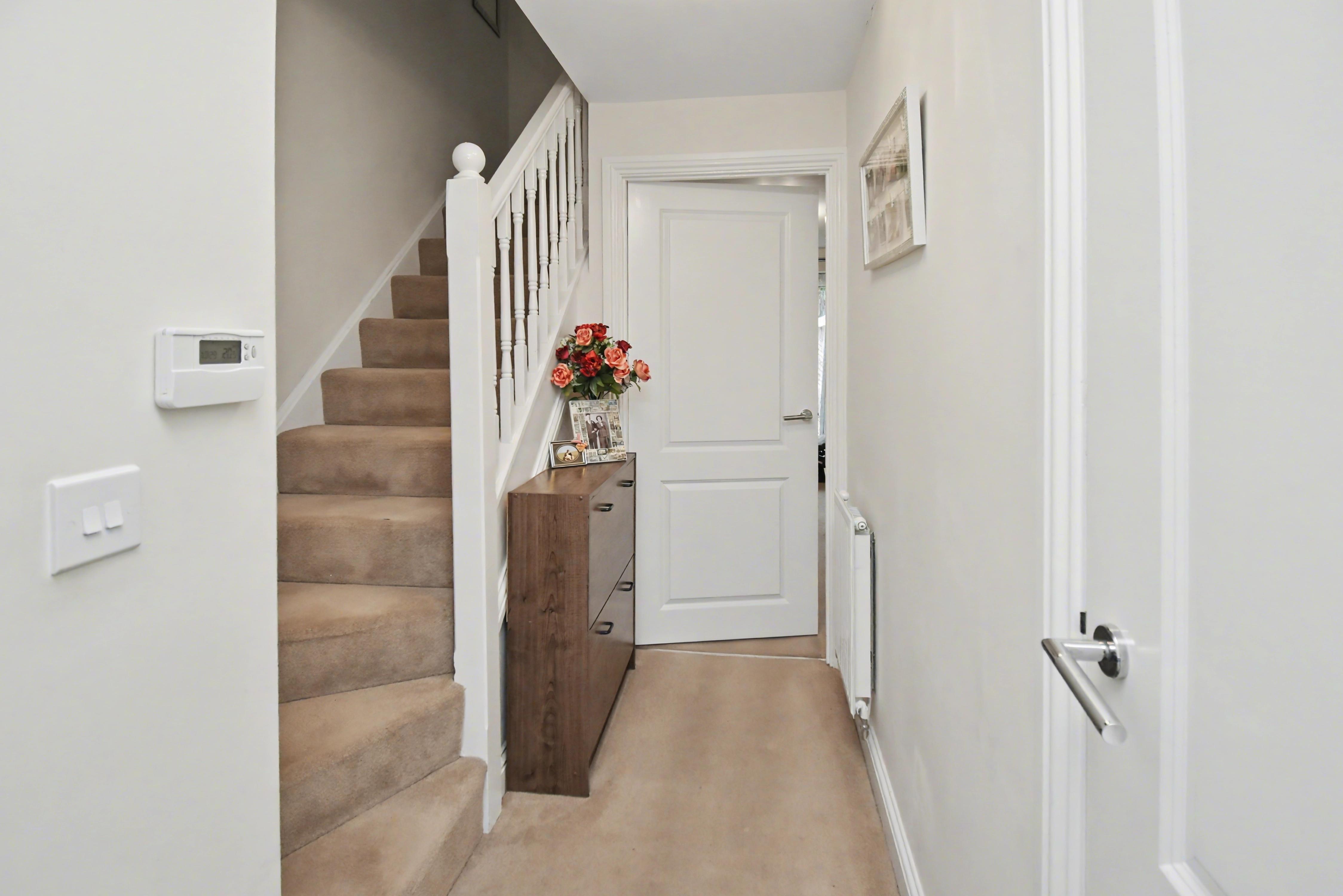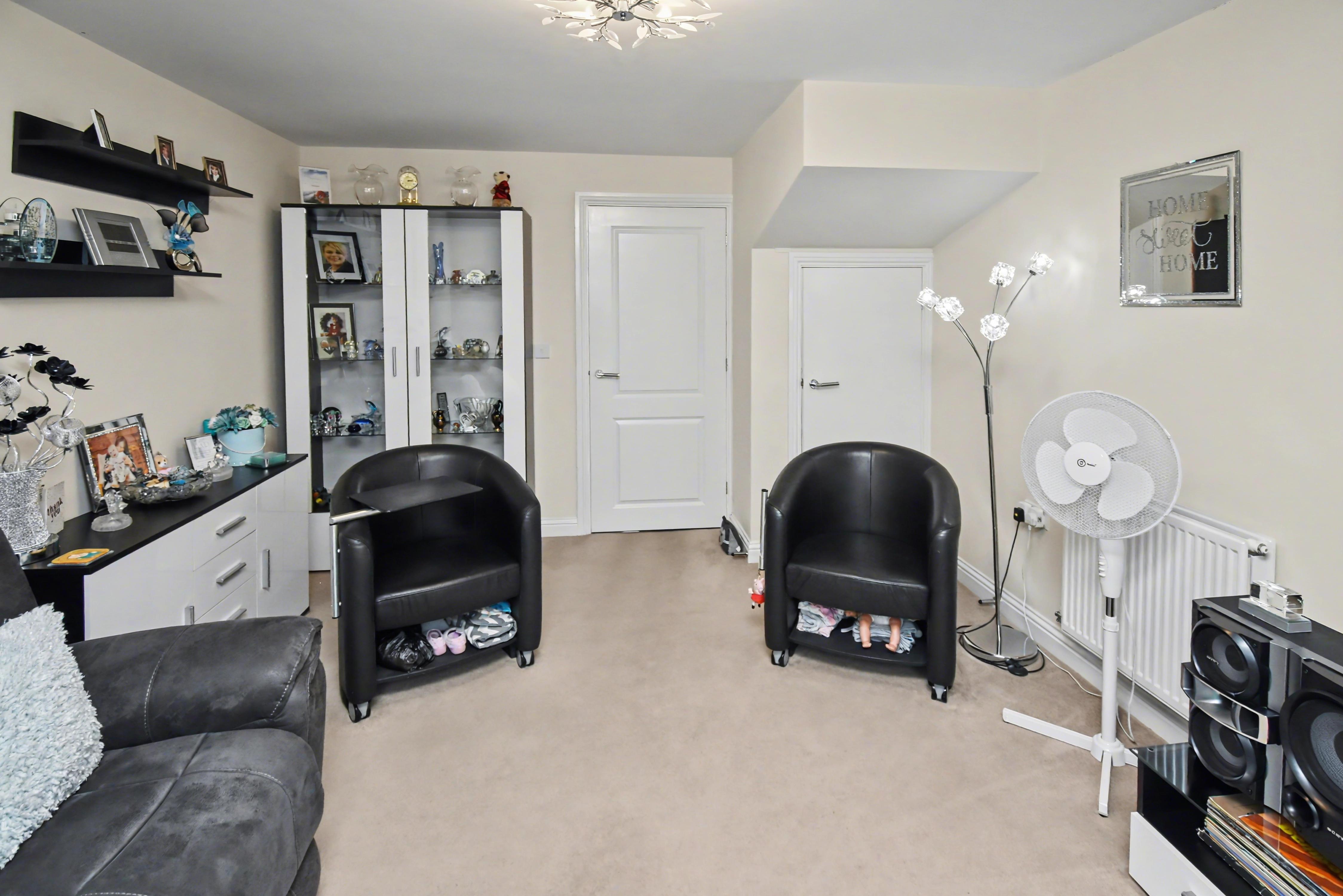 Accommodation includes an entrance hall, cloakroom w/c, a fitted kitchen with integrated appliances, and a large living dining room with French doors which overlook the rear garden. The first floor provides TWO DOUBLE BEDROOMS that boast fitted storage, and a family bathroom. Outside, there is an open plan frontage which provides OFF ROAD PARKING, whilst the rear enjoys an easy maintenance landscaped garden with a pleasant, elevated rockery style bank with shrubs inset, this is fully enclosed with gated access to the side. Early viewings are highly advised! Energy rating B. Estate charge applicable of approx. £200 per annum. Council Tax Band B.