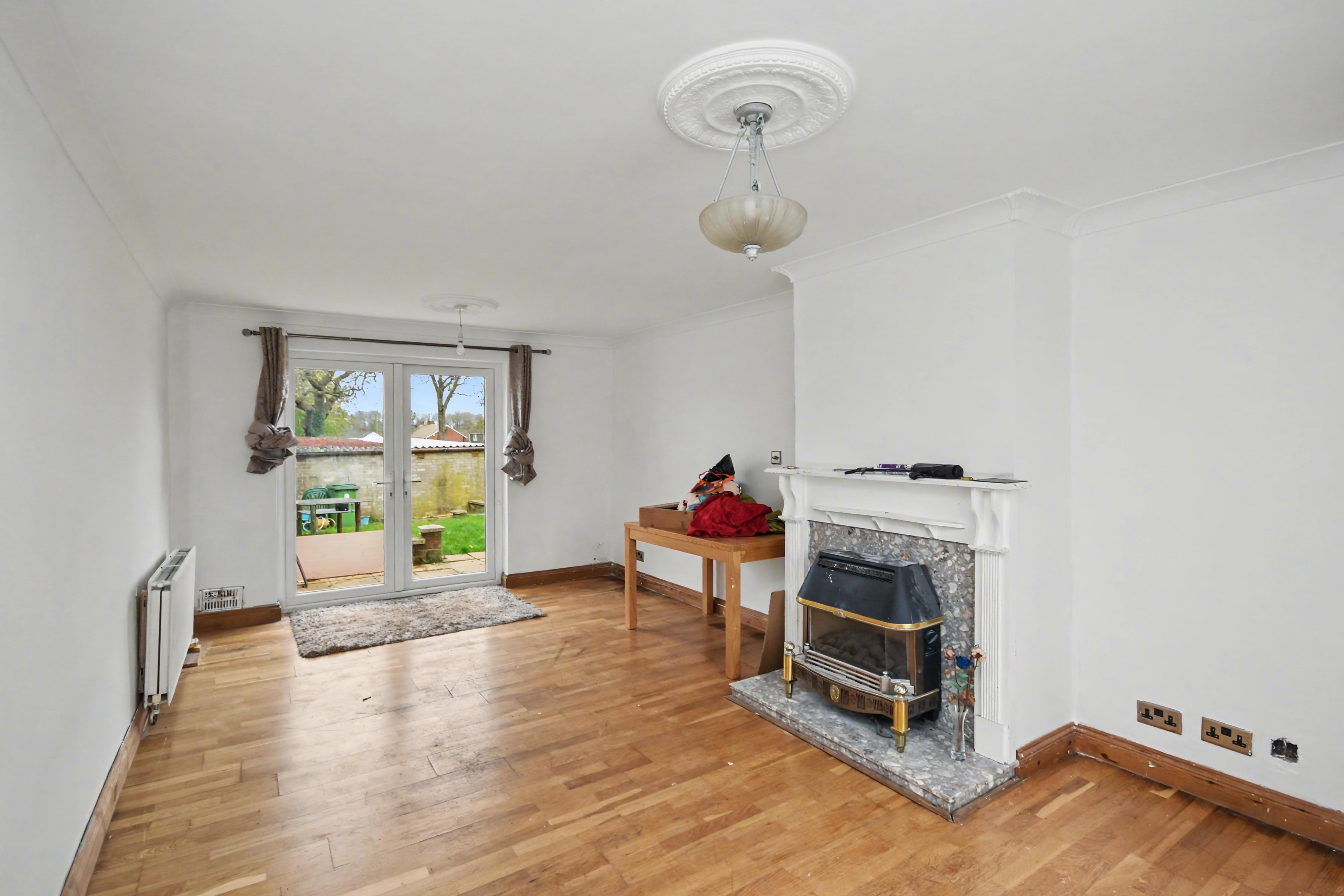 The property comprises a spacious entrance hall, a front to back kitchen diner with a fitted kitchen and space for freestanding appliances, and a dual aspect lounge with patio doors opening onto the rear garden.