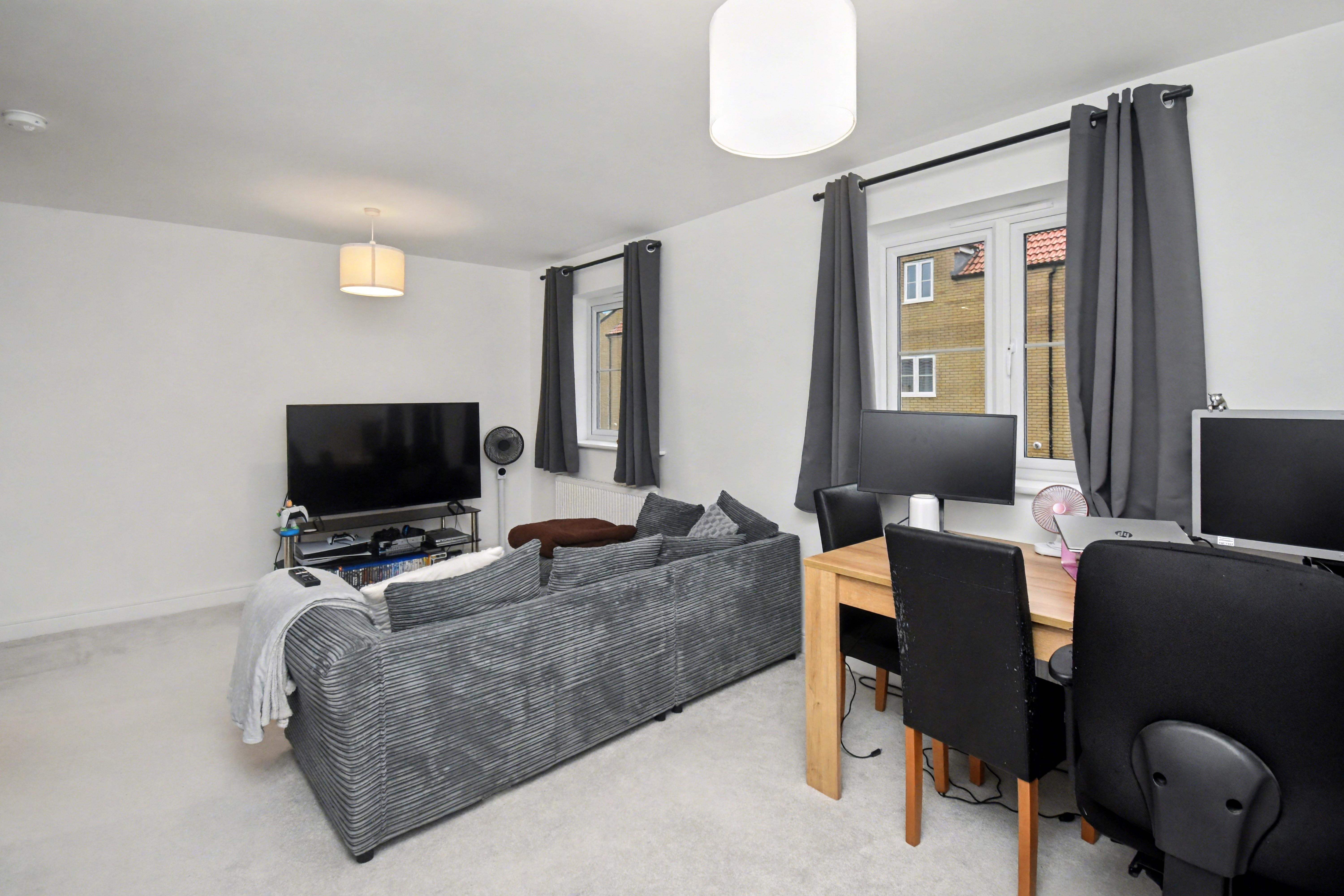 The home enjoys a pleasant position tucked away and within walking distance of local schools, shops and amenities. Inside, the accommodation comprises a spacious living and dining room, a modern fitted kitchen, two double bedrooms with the master benefiting from fitted wardrobes and en-suite bathroom, and a contemporary family bathroom.