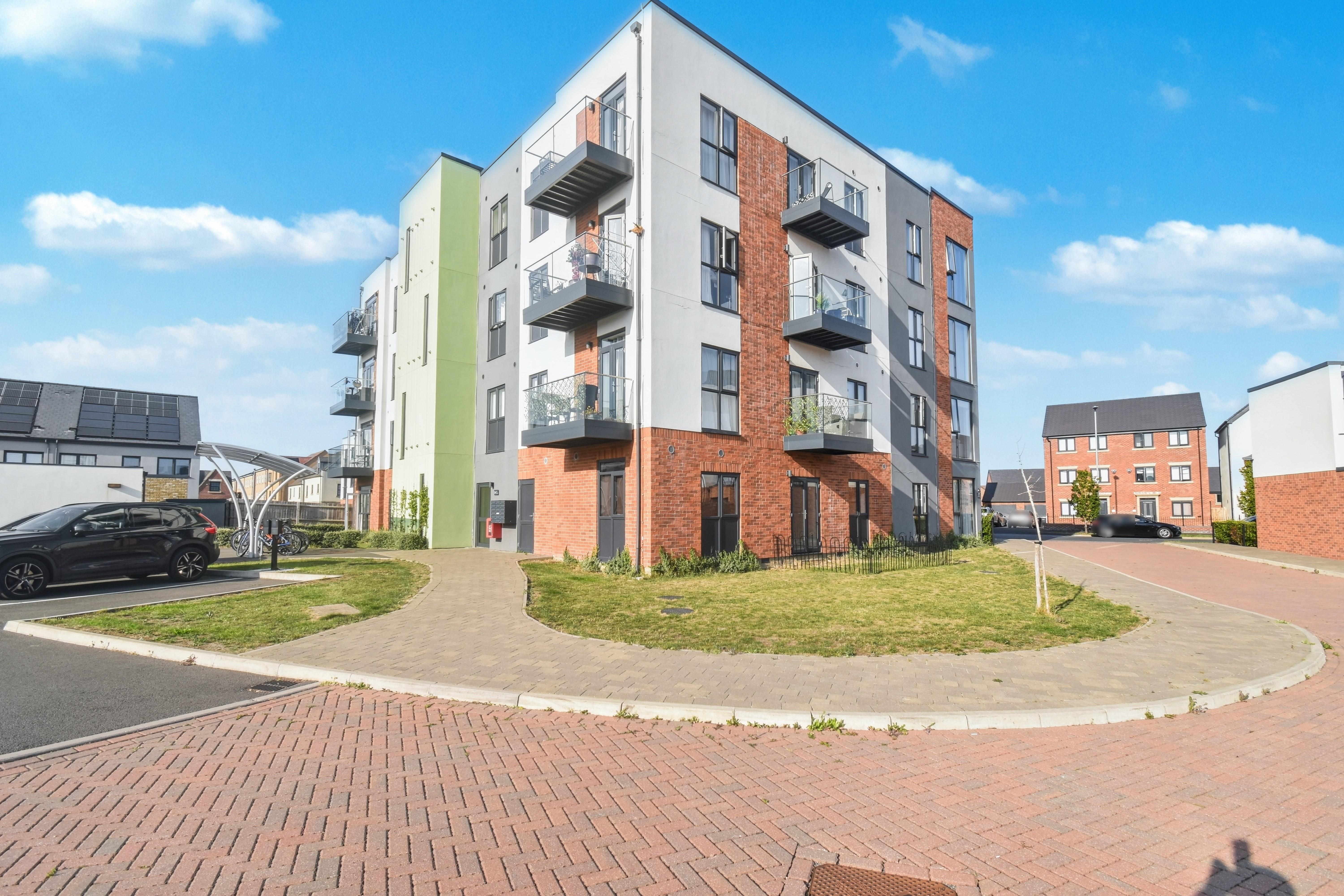 The apartment block is well located being within walking distance to the new shopping parade, schools and other amenities. Features include well maintained communal halls with an elevator, entrance hall, spacious master bedroom and fitted wardrobes. In addition there is a family bathroom with under floor heating. There is an impressive open plan kitchen dining living space with peninsula, an array of integrated appliances including washing machine, dishwasher, fridge/freezer, oven and hob. The kitchen/lounge also benefits from access to the private garden through a set of patio doors. There is an allocated parking space and visitor bays with EV charging accessible. Early viewings are highly encouraged. Energy rating A. Council Tax Band A. Priors Hall urban and civic charges apply - £278 per annum. Service charge of approx £98 per calendar month.