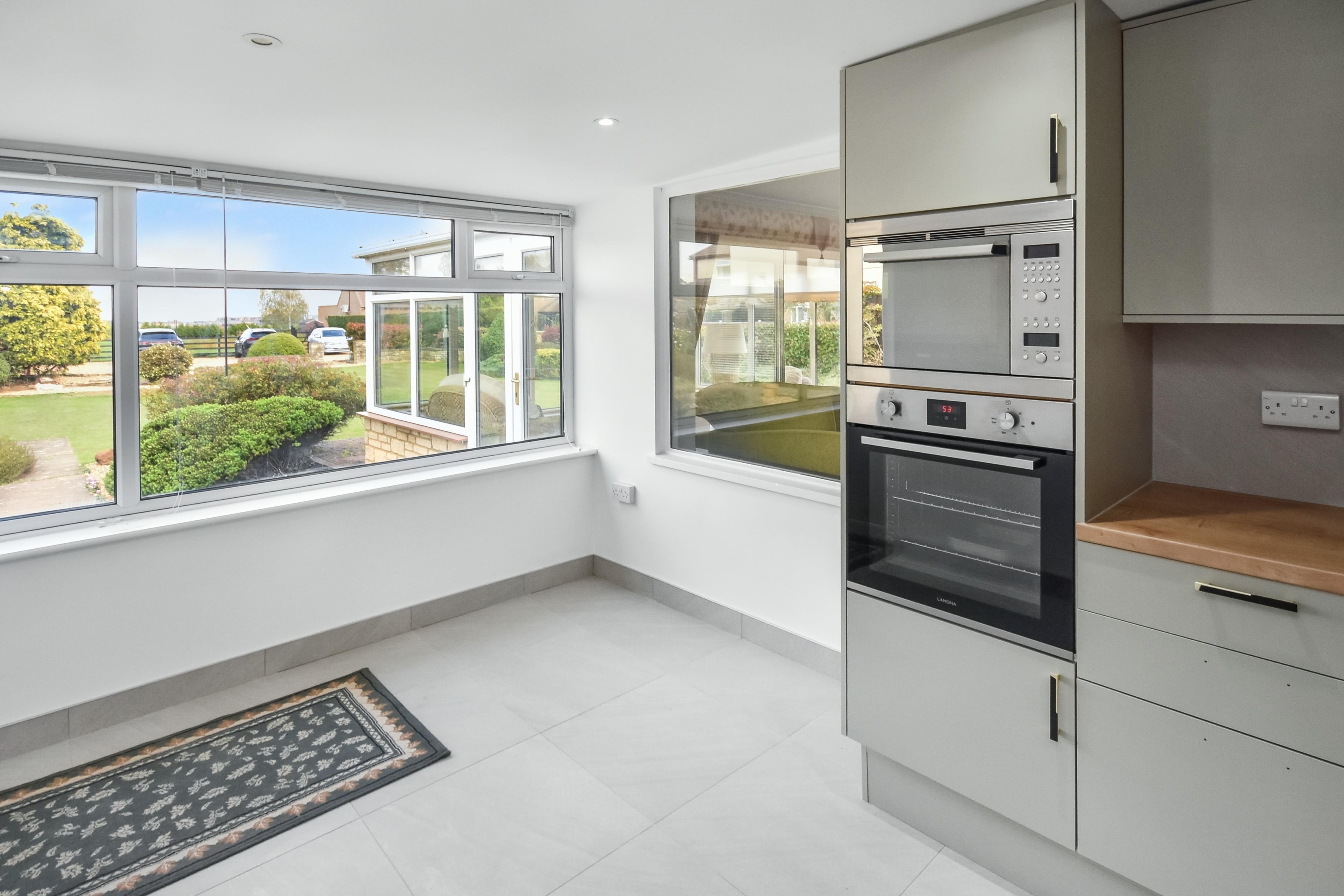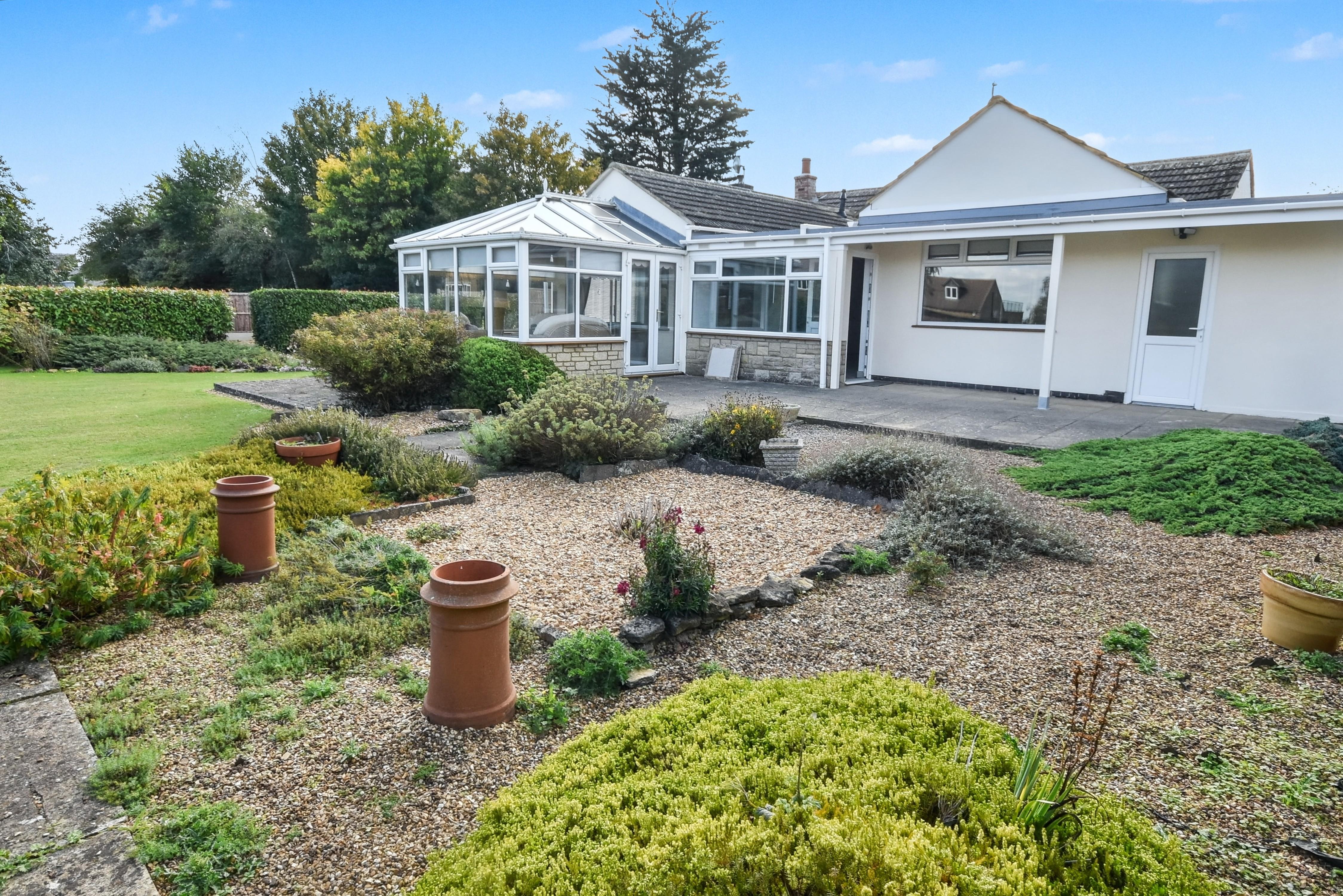 The bungalow features three generously sized double bedrooms and a separate study. The fitted kitchen diner provides a practical yet sociable space for everyday use, while a separate store/utility area adds valuable additional storage and functionality. A modern family bathroom with walk-in shower completes the main facilities.